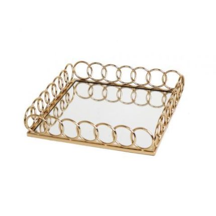 Δίσκος Τετράγωνος Μεταλλικός Χρυσός με Καθρέφτη Espiel (30cm x 30cm) | MR19366G Georgiou
