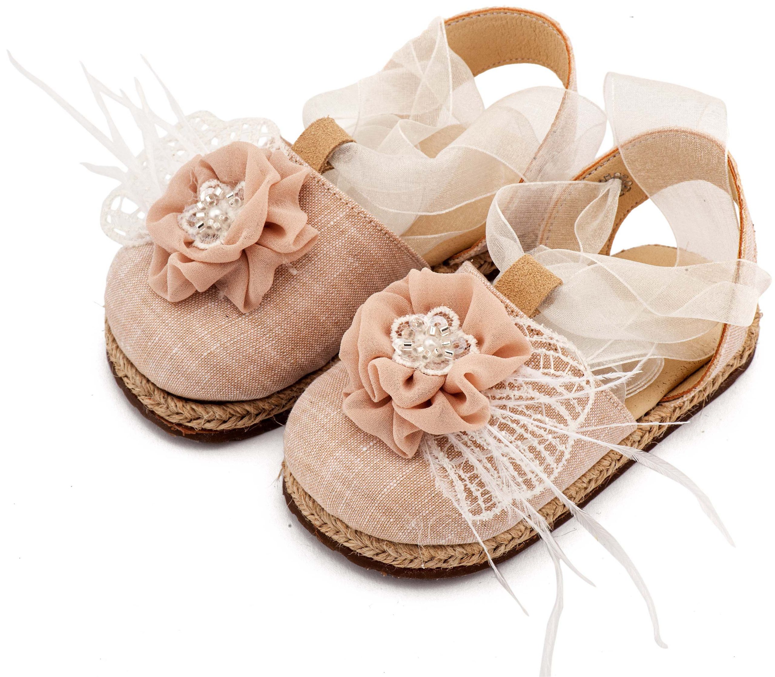 Υφασμάτινη Εσπαντρίγια με Χειροποίητο Διακοσμητικό με Πούπουλα σε Εκρού Νουντ Χρώμα.