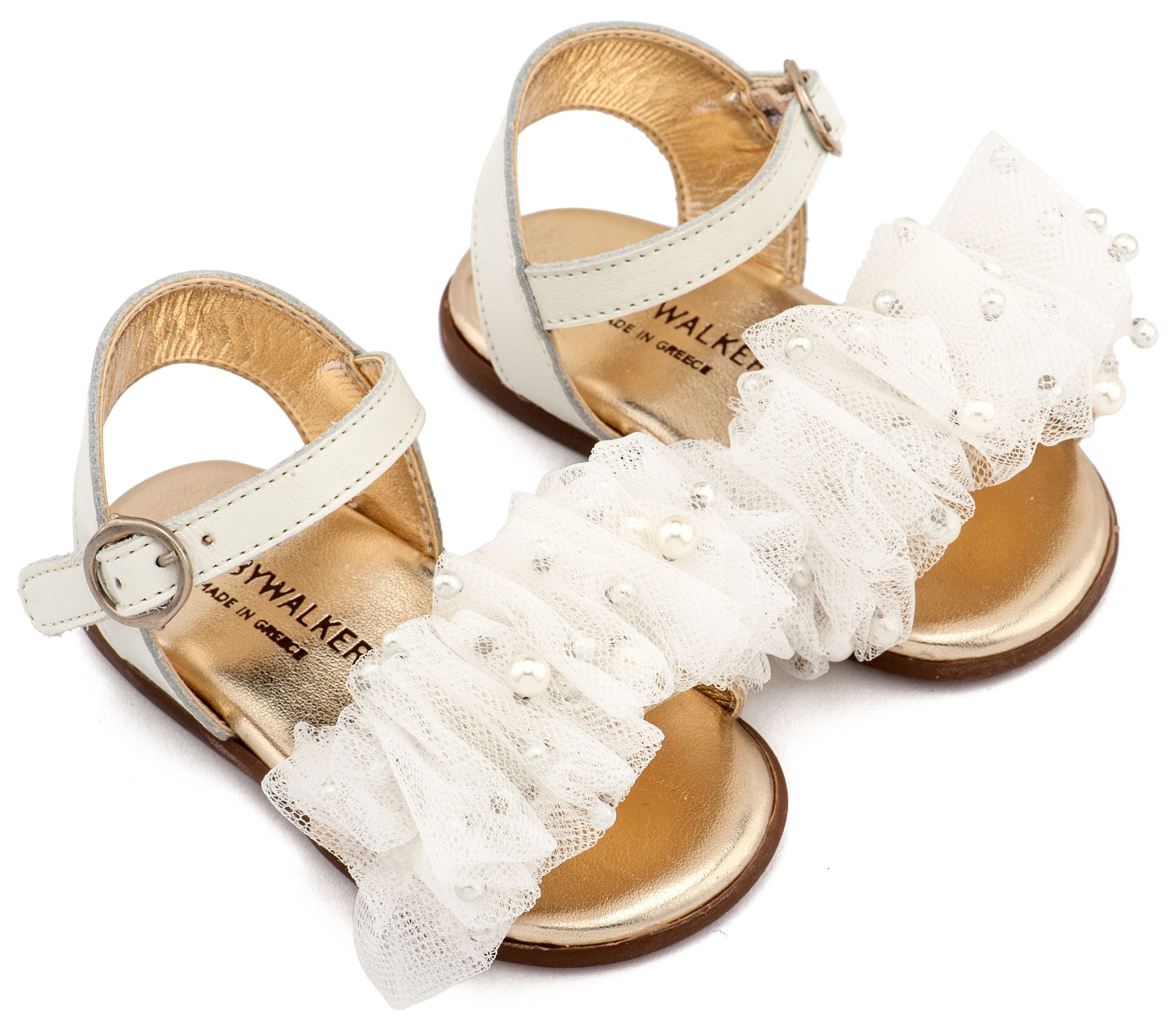 Babywalker Βαπτιστικό Παπουτσάκι για Πρώτα Βήματα Μπαλαρίνα Διακοσμημένη με Chiffon Λουλούδια PRI2654 Λευκό