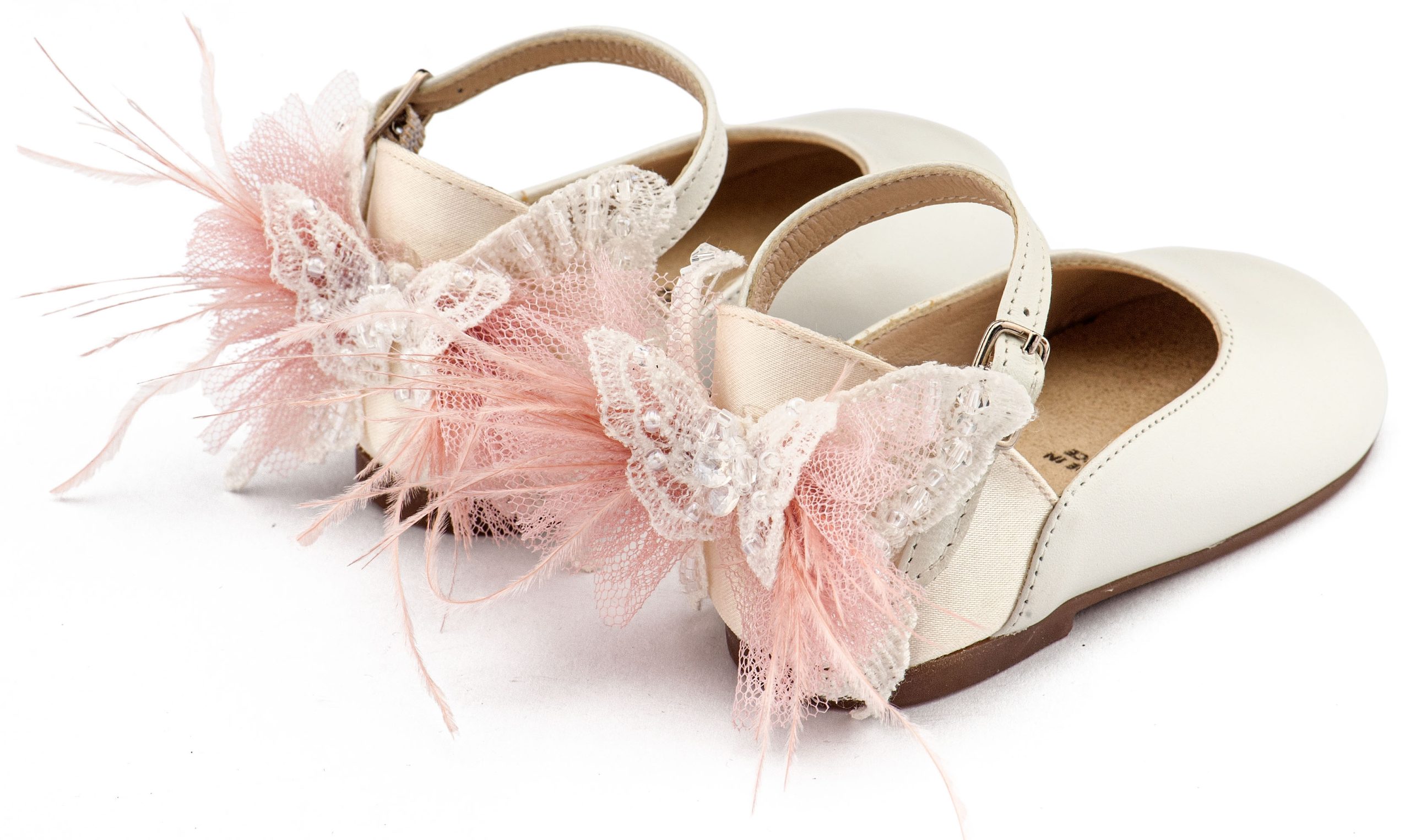 Babywalker Βαπτιστικό Παπουτσάκι Περπατήματος Γοβάκι με Λουλούδια και Πούπουλα BW4887 Εκρού