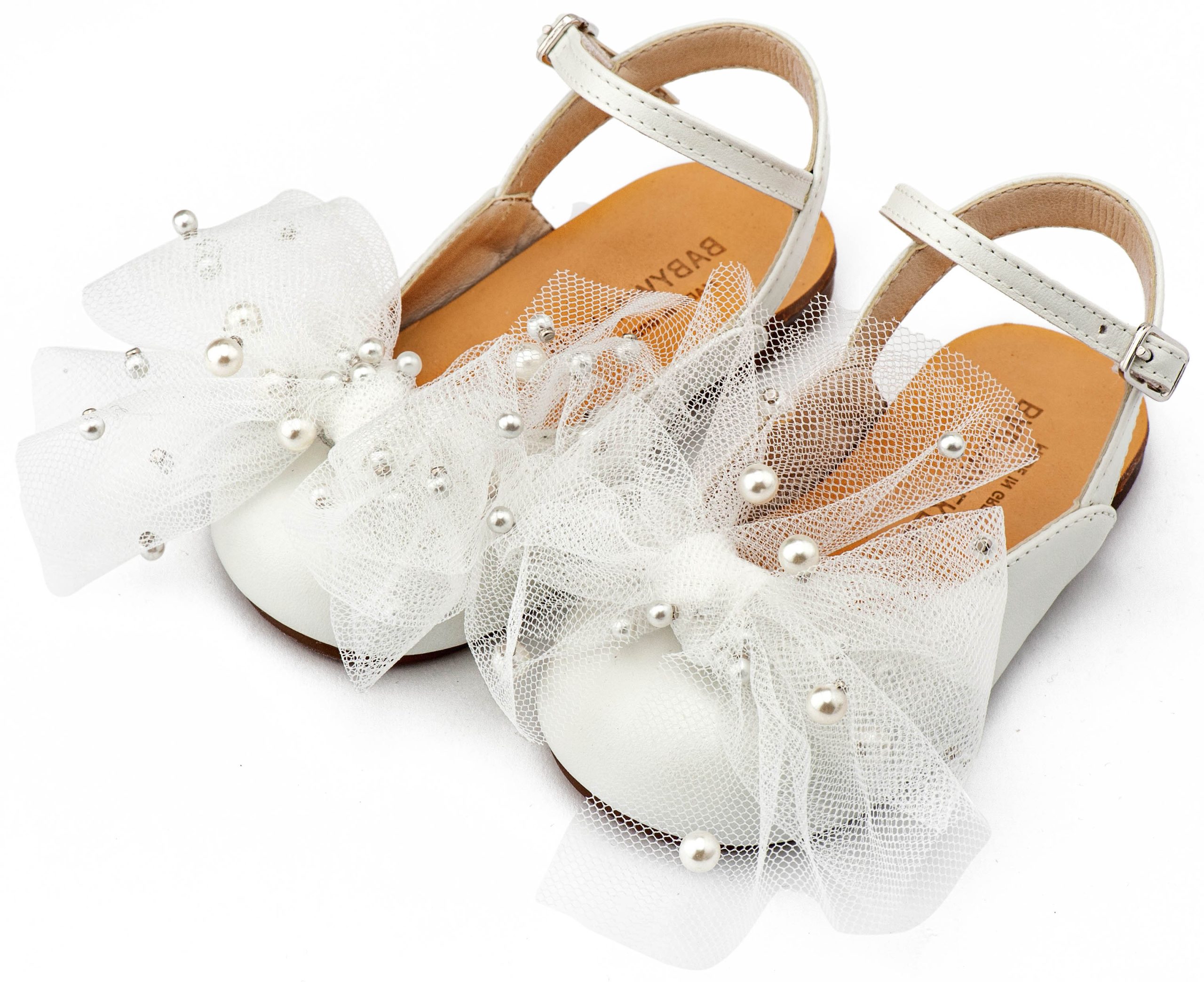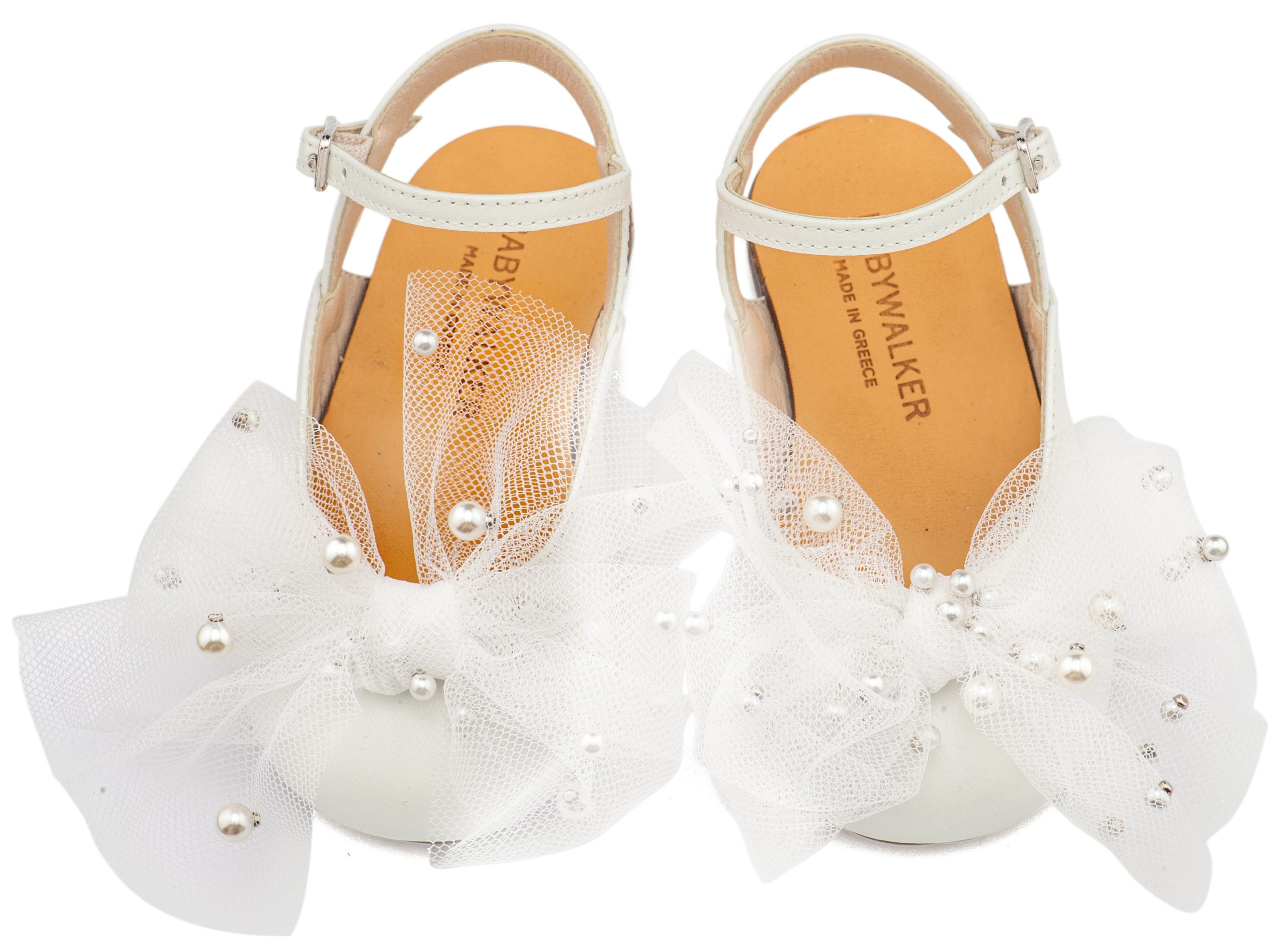 Babywalker Βαπτιστικό Παπουτσάκι Περπατήματος Γαλλικό Σαμπό με Φιόγκο Οργάντζας και Στρας BW4883 Λευκό