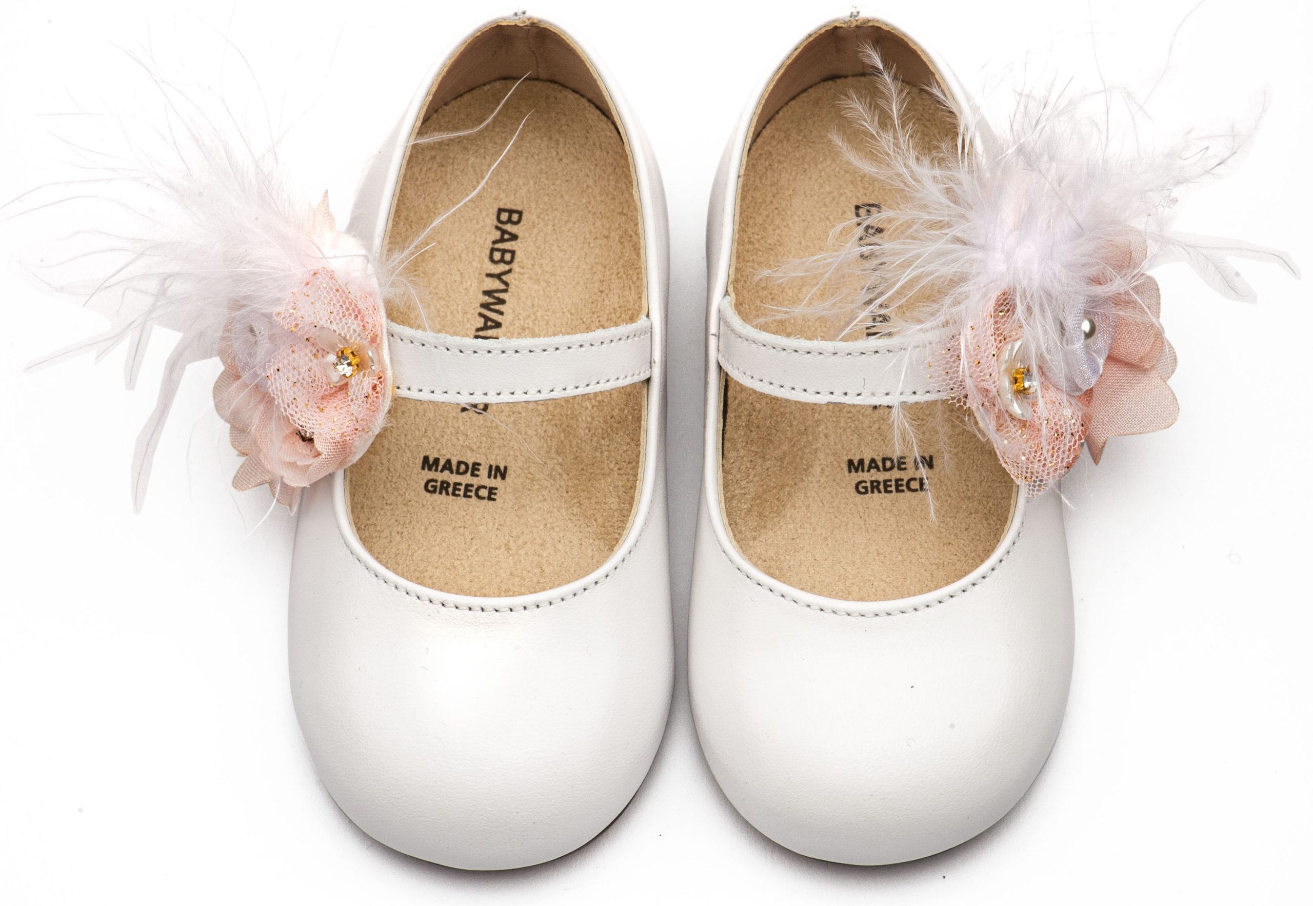 Babywalker Βαπτιστικό Παπουτσάκι Περπατήματος Γοβάκι με Λουλούδια και Πούπουλα BW4887 Εκρού