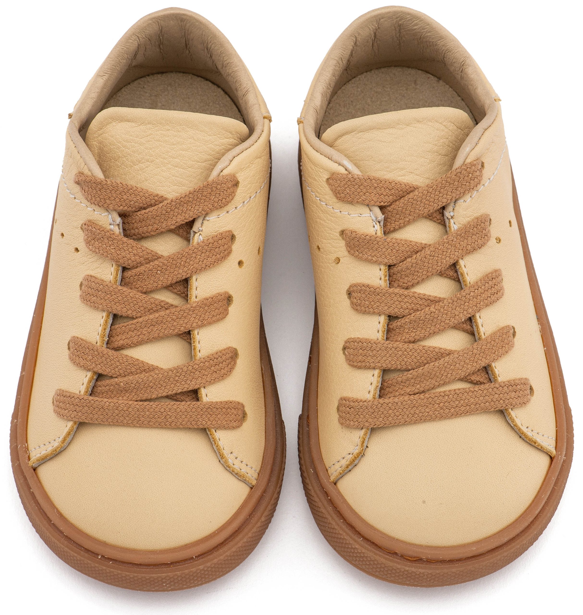 Δετό Δερμάτινο Sneaker από Δέρμα Νάπα σε Καλαμποκί Χρώμα με Κορδόνι Ταμπά.