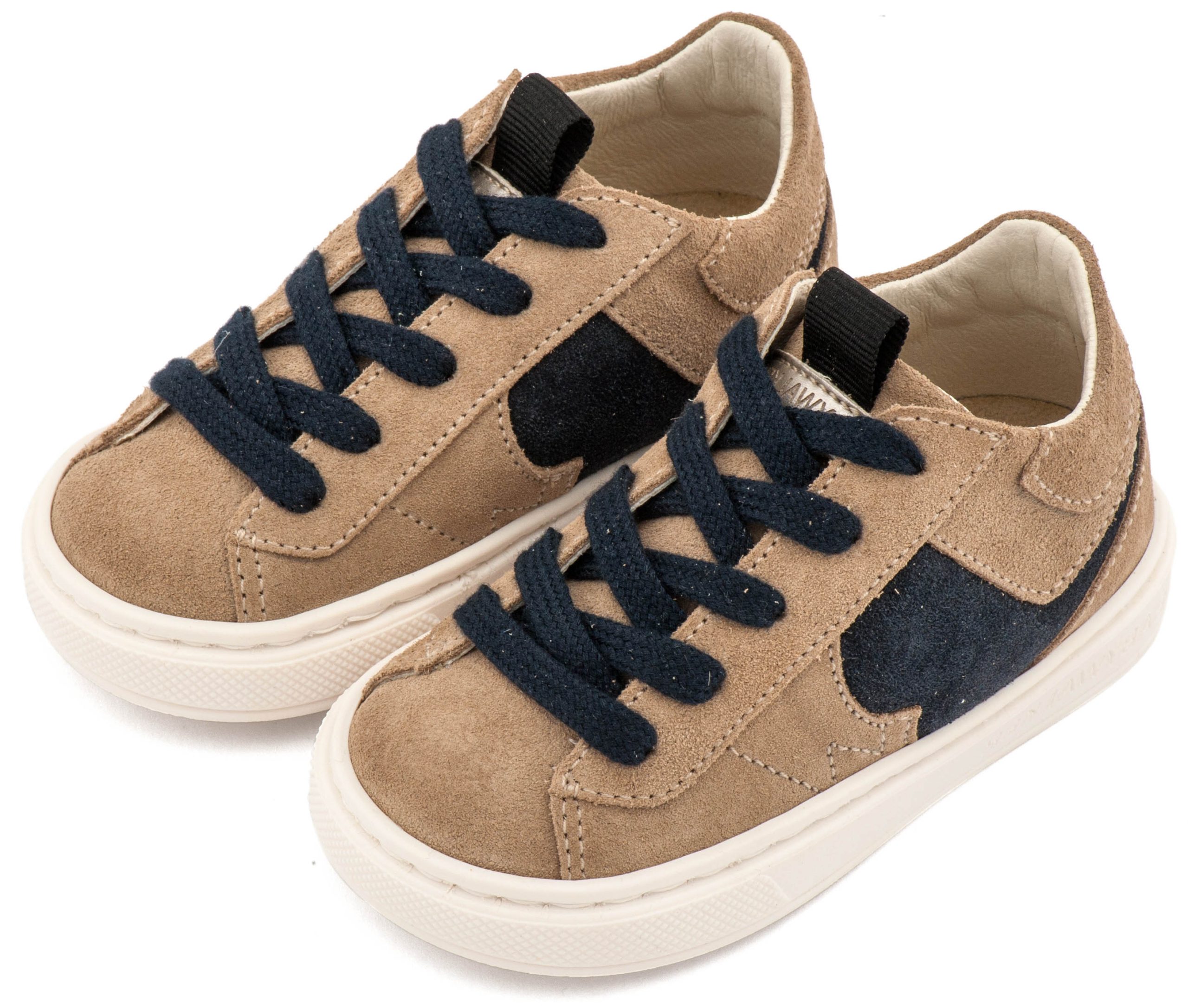 Δερμάτινο Δίχρωμο Sneaker Δετό σε Μπεζ Μπλε Χρώμα.