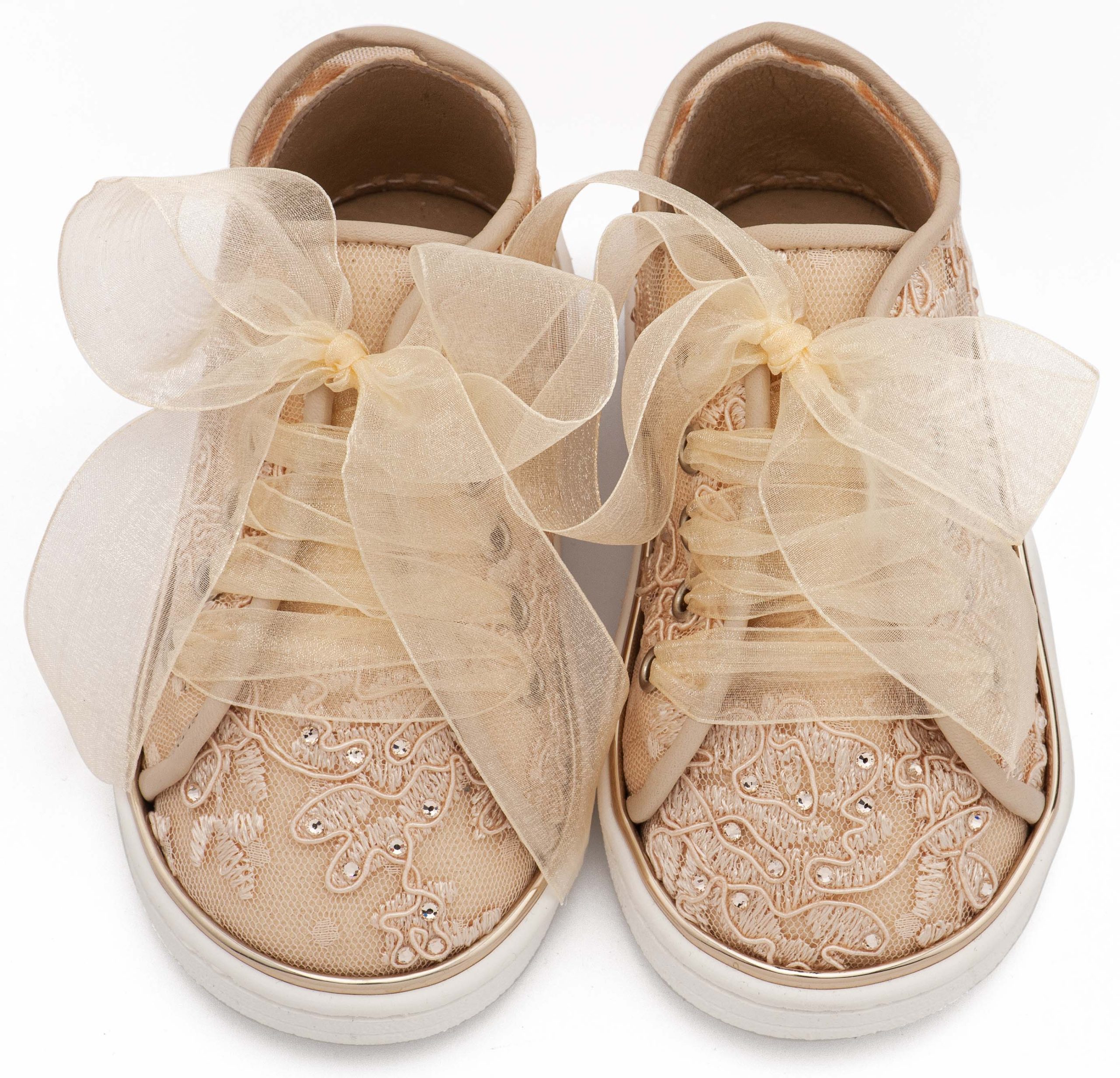 Babywalker Βαπτιστικό Σαμπό Διακοσμημένο Ολόγυρα με Στρας και Φιόγκο από Στρας στη Φτέρνα LU6132 Μπεζ