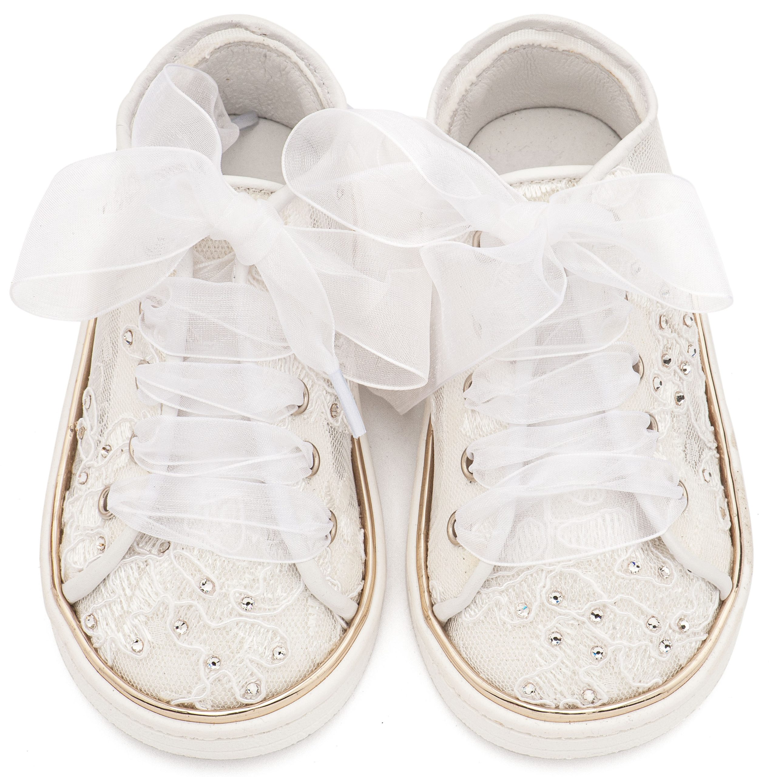 Sneaker από Ύφασμα Φιλντιρέ Λουλούδια με Δερμάτινες Λεπτομέρειες και Chiffon Κορδόνι σε Λευκό Χρώμα.