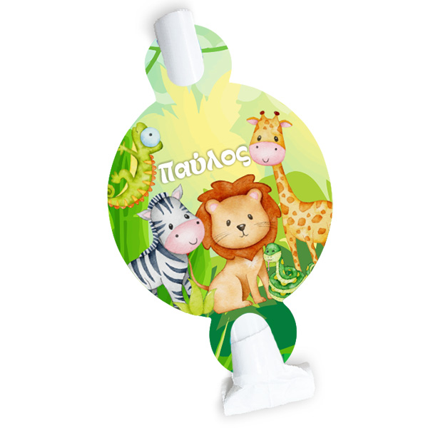 Προσωποποιημένα Blowouts με θέμα την Ζώα Ζούγκλας για να μοιράσεις στους καλεσμένους του πάρτυ και να τους βάλεις σε γιορτινή διάθεση!