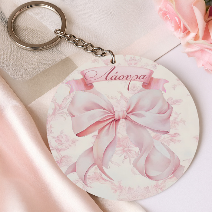 Διακοσμητικό μπρελόκ με θέμα Ροζ Φιόγκος. Πρωτότυπο δωράκι για τους καλεσμένους ή διακοσμητικό μπομπονιέρας για τη Βάπτιση του μωρού σας!