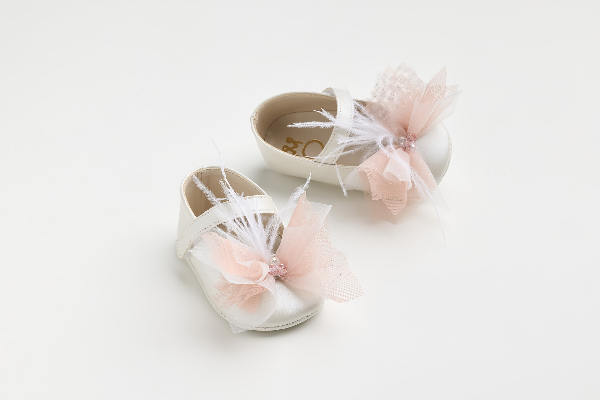 Χειροποίητη Βαπτιστική Μπαλαρίνα Αγκαλιάς Εκρού με Γκλίτερ, Σομόν Τούλι και Φτερά K617B | Everkid