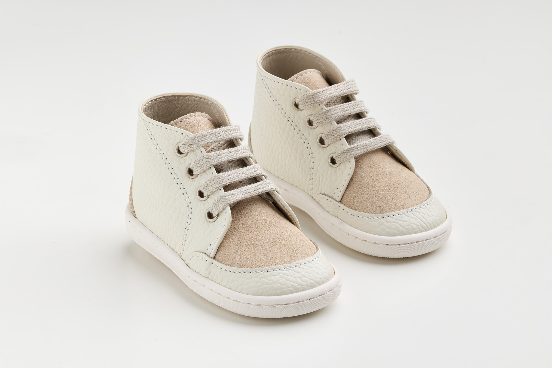 Μποτάκι για τα πρώτα βήματα σε εκρού δέρμα και μπεζ καστόρ δέρμα, νούμερα 18-21.