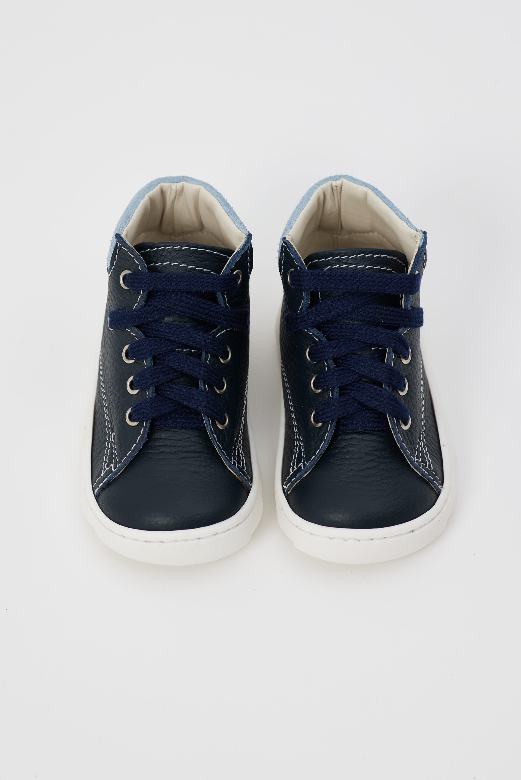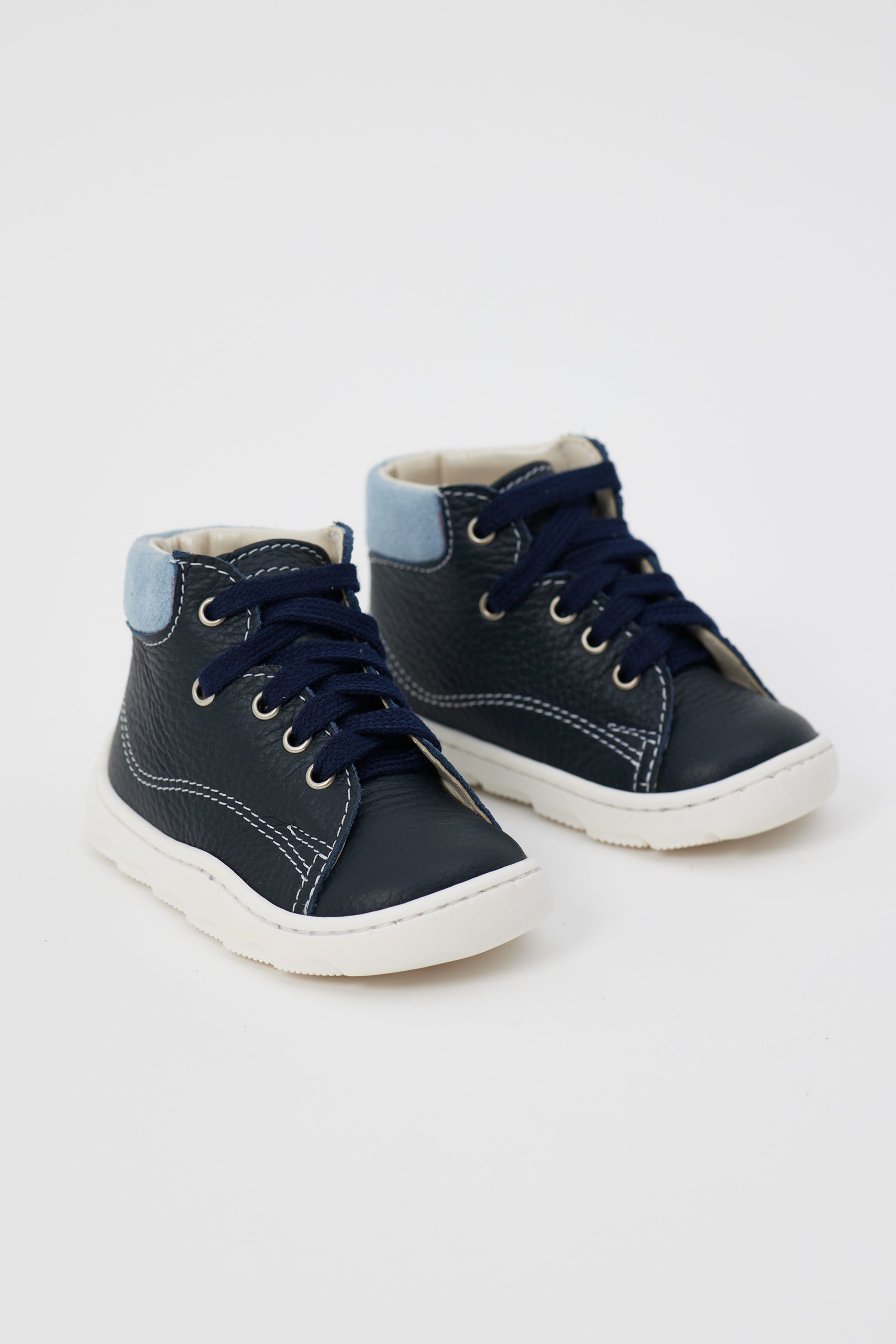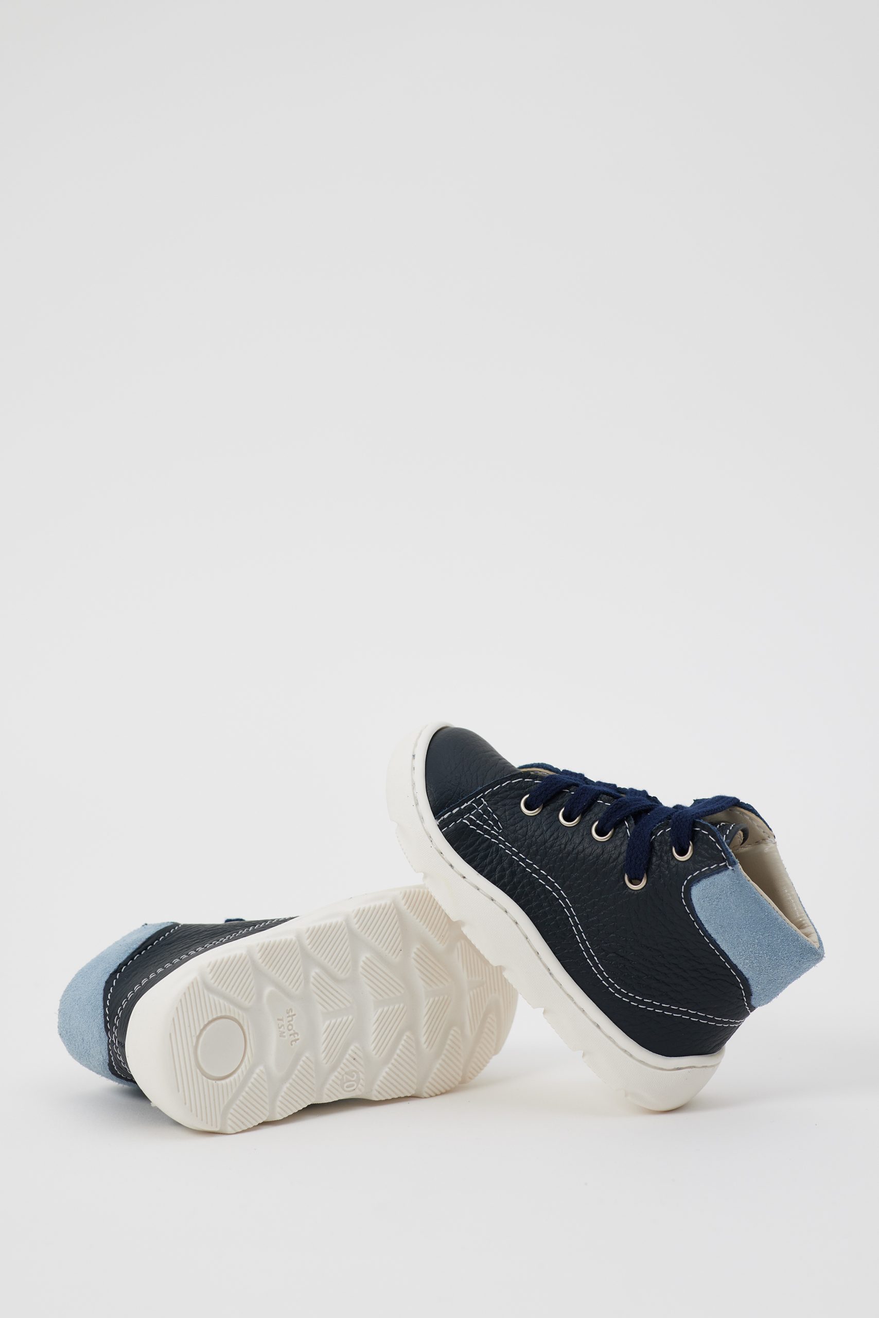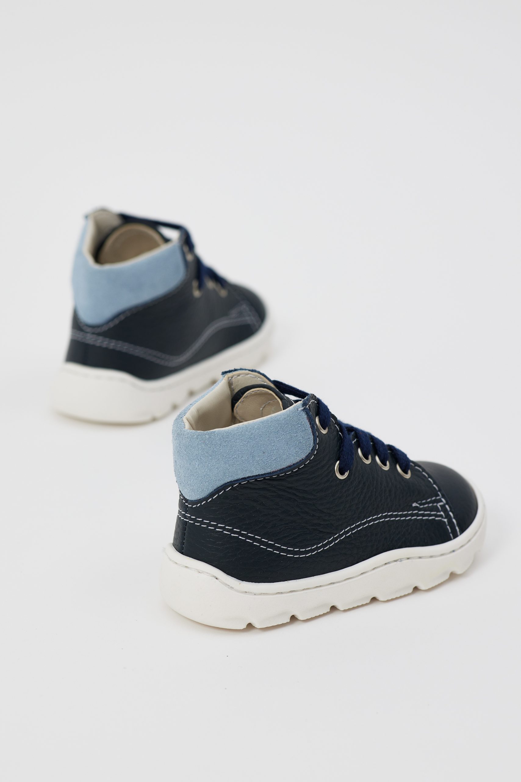Μποτάκι περπατήματος σε συνδυασμό baby σιέλ καστόρ και μπλε λείο δέρμα. Νούμερα 19 – 27.