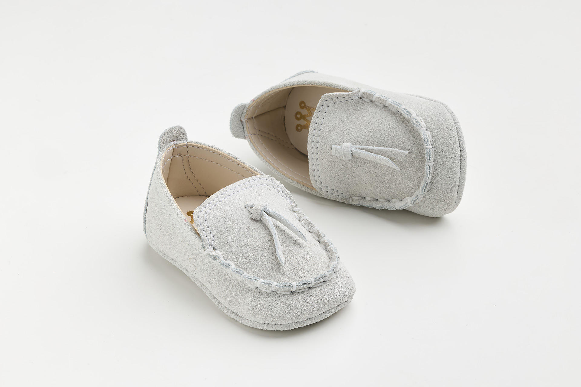 Παπουτσάκι αγκαλιάς σε λευκό καστόρ δέρμα, νούμερα 16-19.