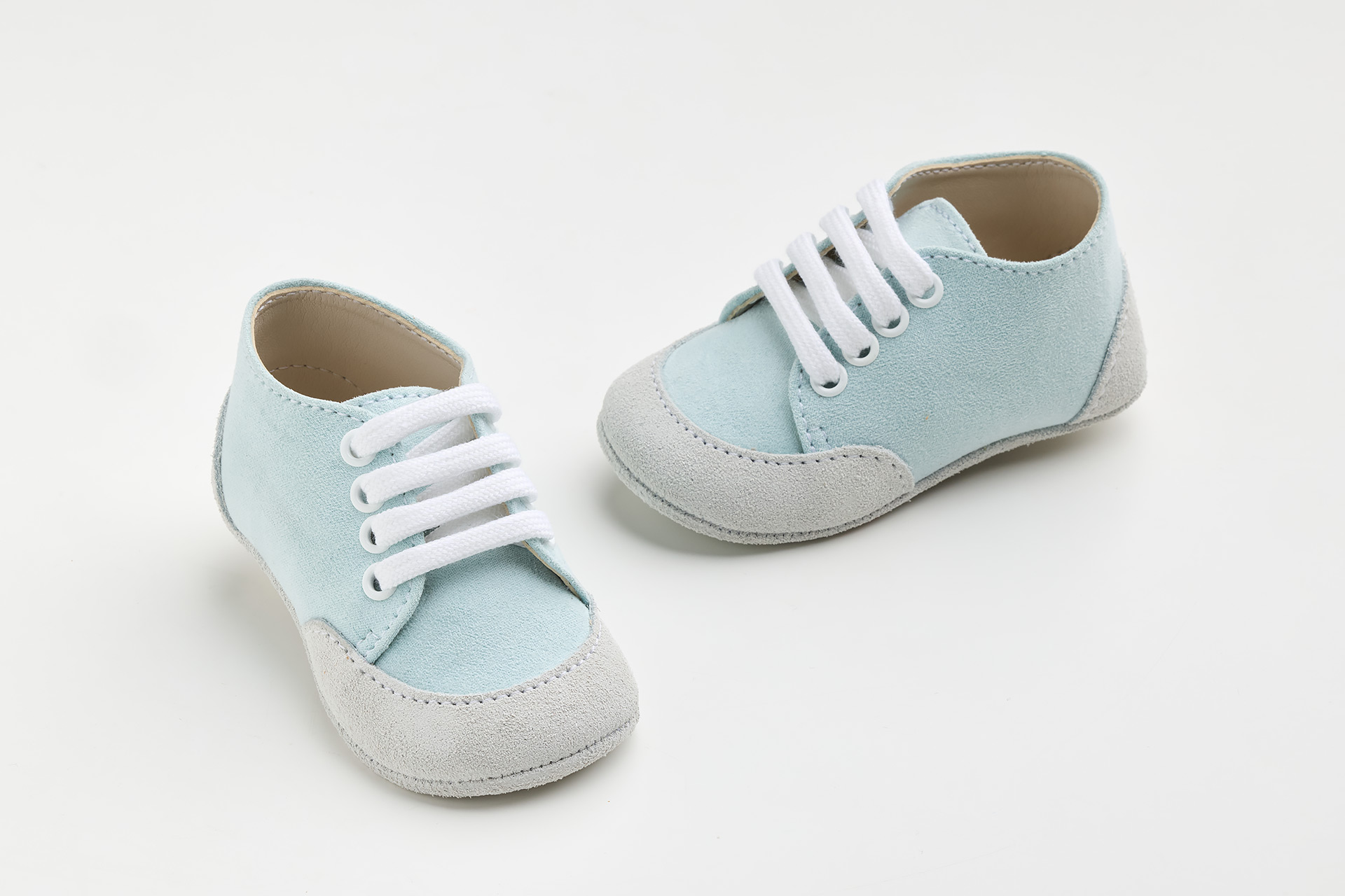 Παπουτσάκι αγκαλιάς σε λευκό καστόρ δέρμα και βεραμάν-aqua συνθετικό καστόρ, νούμερα 16-19.