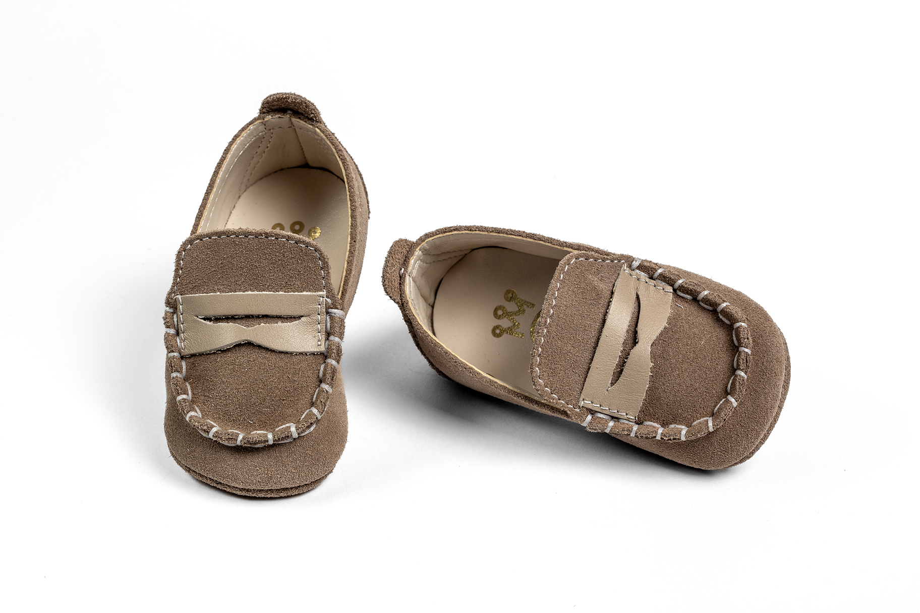 Παπουτσάκι αγκαλιάς χαμηλό, τύπου loafer από καστόρ δέρμα σε χρώμα πούρο, νούμερα 16-19.