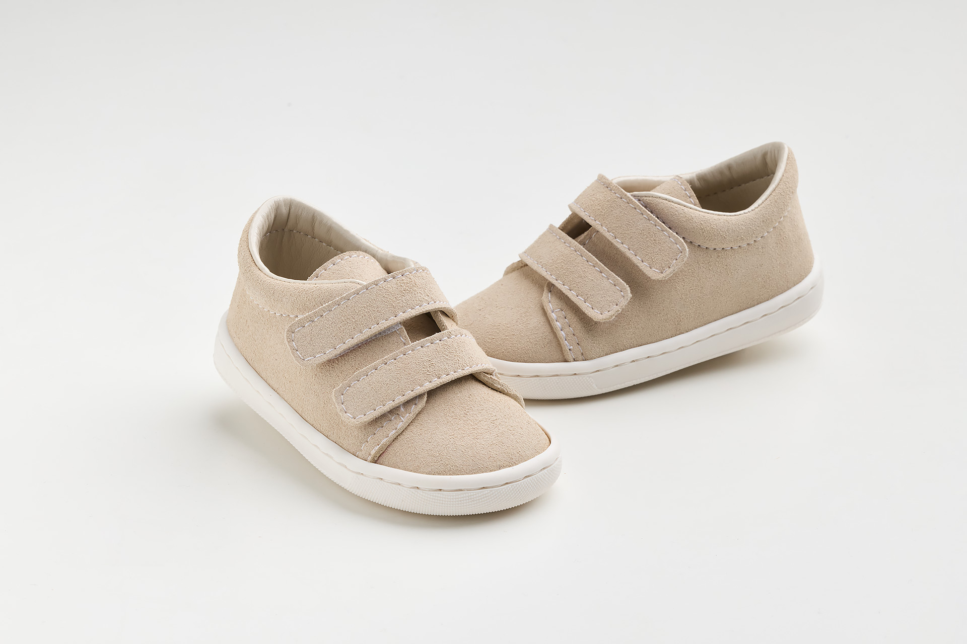 Παπουτσάκι για τα πρώτα βήματα σε μπεζ καστόρ δέρμα, κλείσιμο με Velcro, νούμερα 18-21.