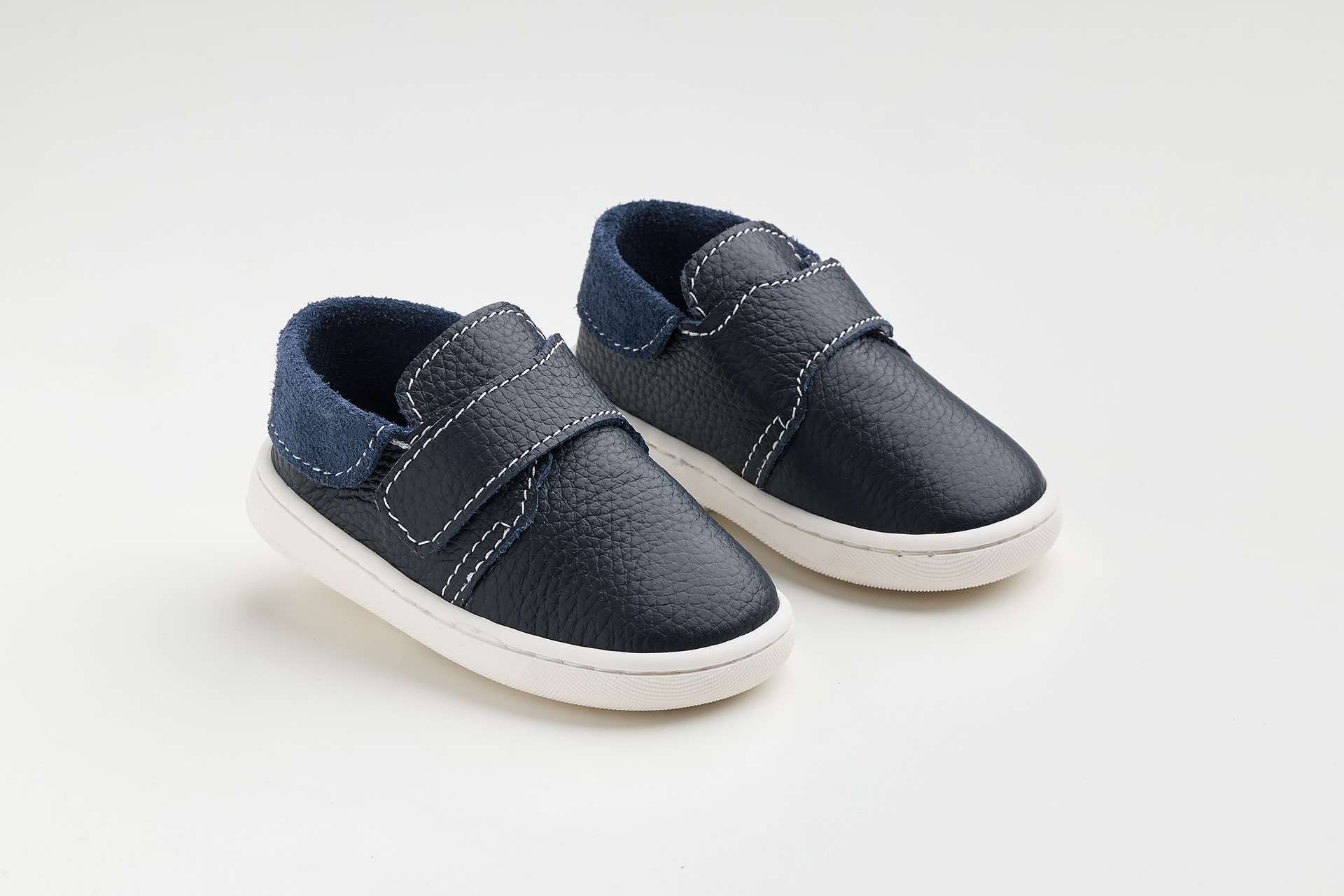 Παπουτσάκι για τα πρώτα βήματα σε μπλε δέρμα, κλείσιμο με Velcro , νούμερα 18-21.