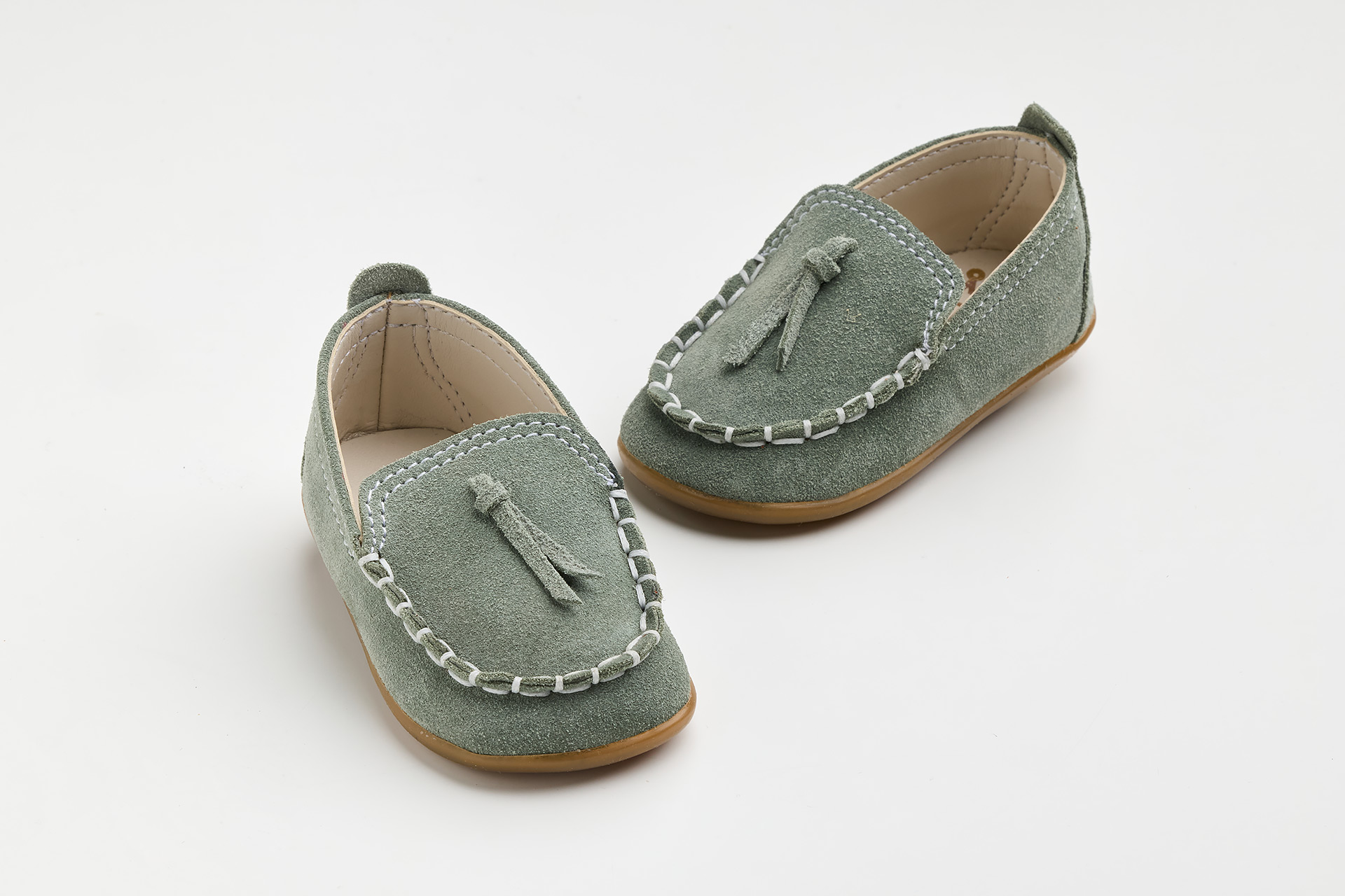 Παπουτσάκι για τα πρώτα βήματα σε μέντα καστόρ δέρμα, νούμερα 18-21.