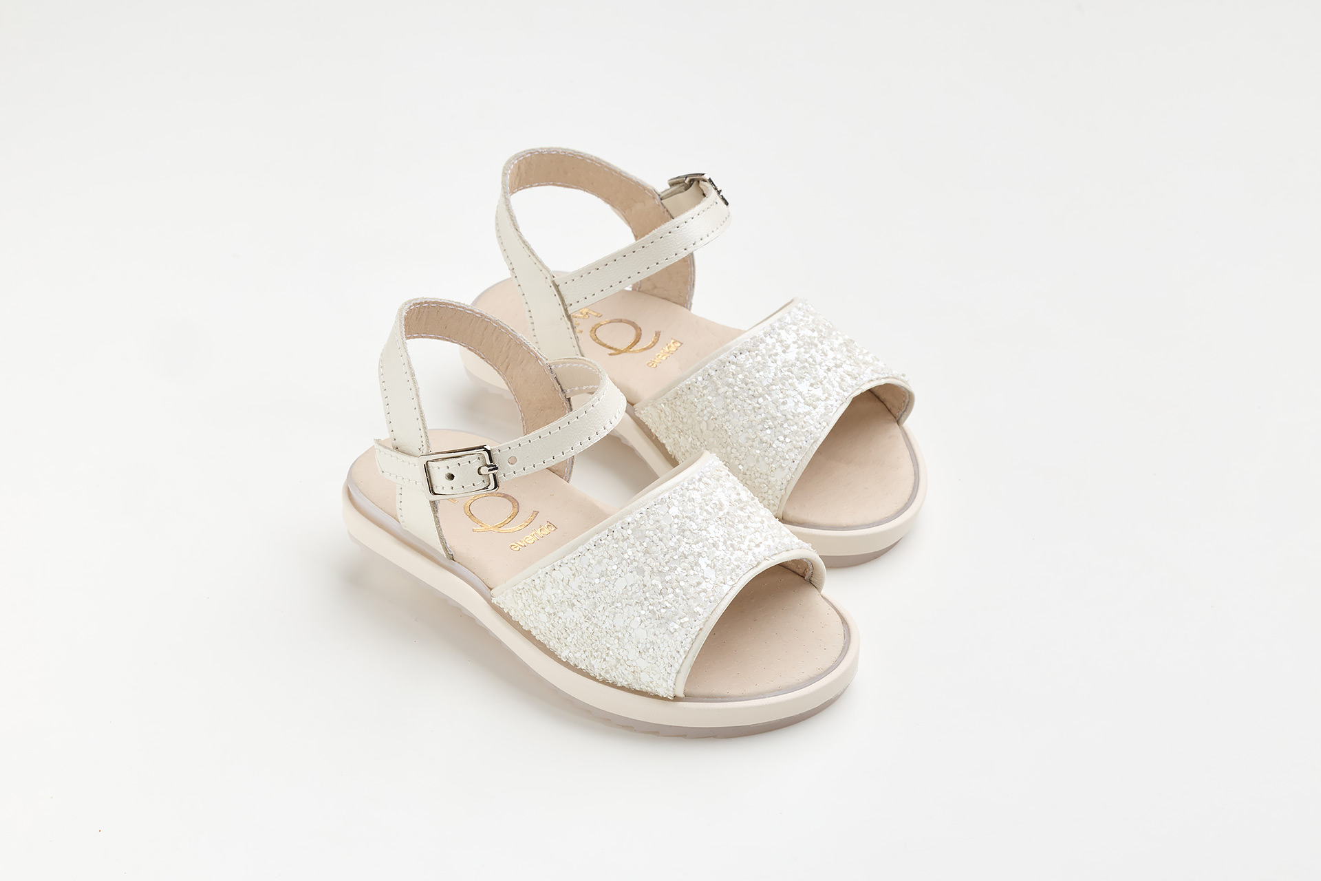 Βαπτιστικό Σανδάλι περπατήματος σε εκρού πέρλα δέρμα και off white ματ γκλίτερ, Ελληνικής Κατασκευής από την Everkids.
