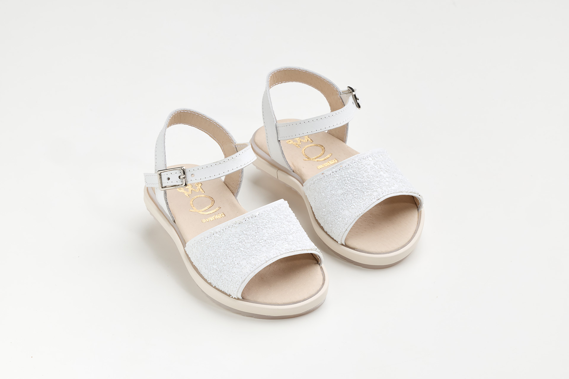 Βαπτιστικό Σανδάλι περπατήματος σε λευκό δέρμα και λευκό ματ γκλίτερ, Ελληνικής Κατασκευής από την Everkids.