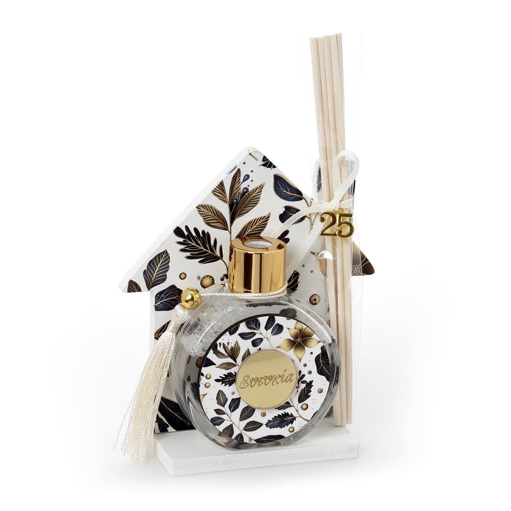 Αρωματικό χώρου με στικς 50ml πάνω σε βάση με ξύλινη πλάτη σπιτάκι (μοτίβο φύλλα).