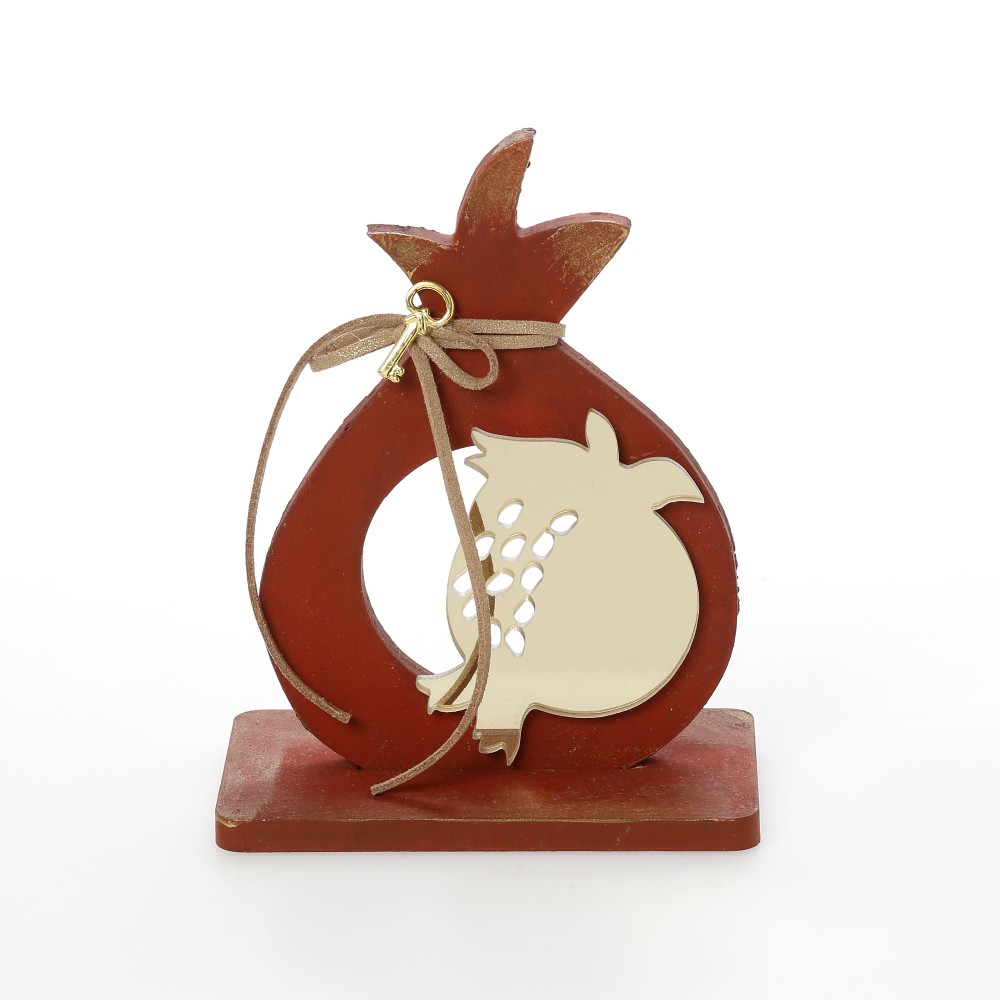 Ξύλινο γούρι ρόδι με βάση, σε μπορντό χρώμα και χρυσό plexiglass ρόδι