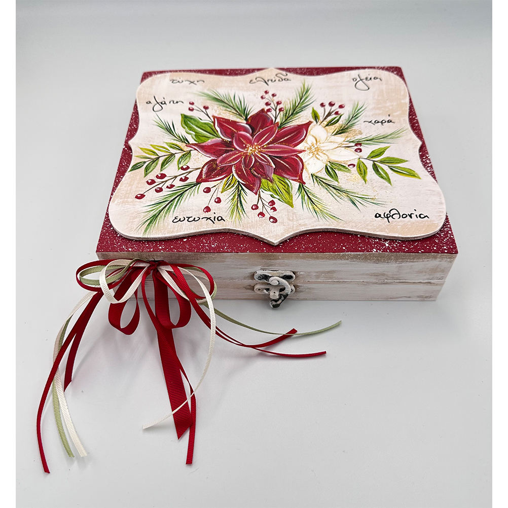 Χριστουγεννιάτικο Ξύλινο Κουτί με Ρόδια Ζωγραφισμένο στο Χέρι ΖΛΣ1Χ1 (22x20x5,5εκ)