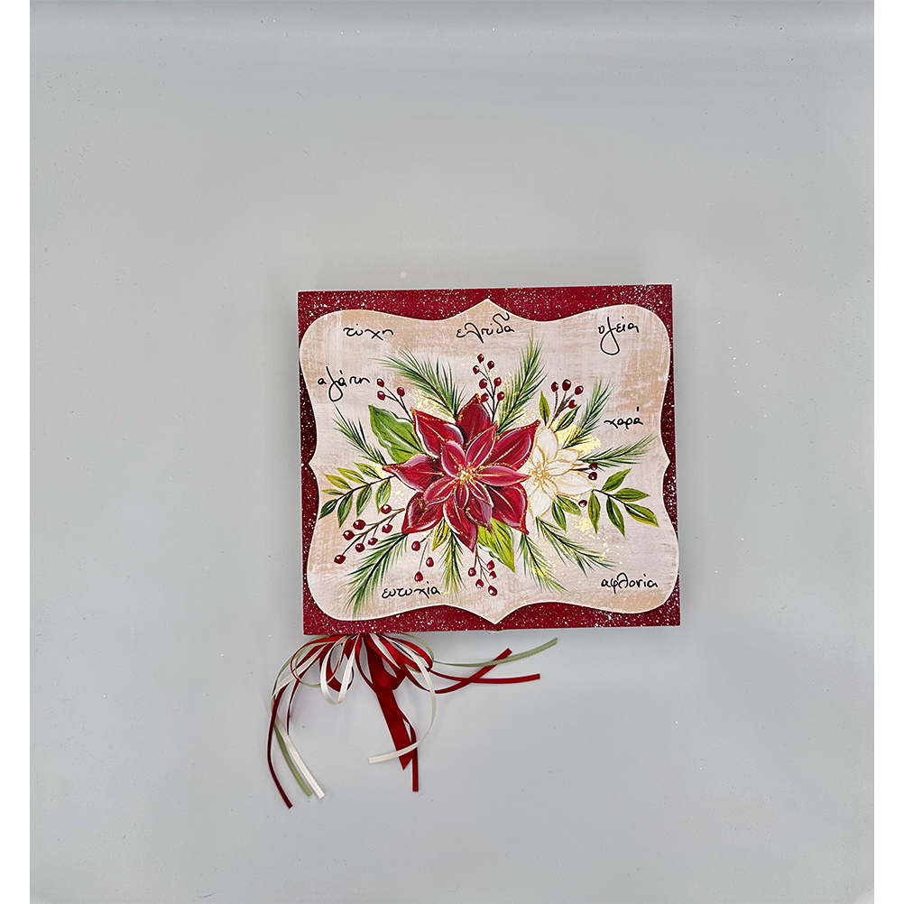 Χριστουγεννιάτικο Ξύλινο Κουτί με Δέντρο, Ρόδι και Ευχές Ζωγραφισμένο στο Χέρι ΖΛΣ1Χ2 (22x20x5,5εκ)