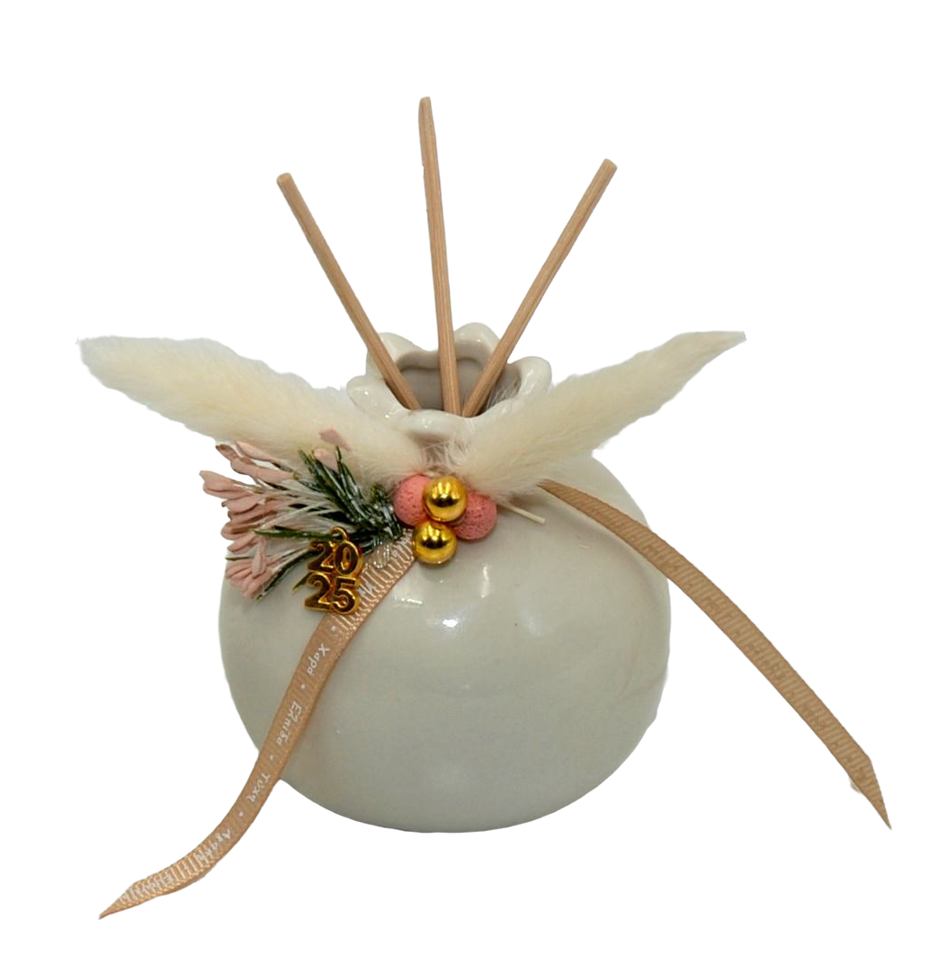 Διακοσμητικό αρωματικό ρόδι κρεμ με ροζ διακοσμητικά