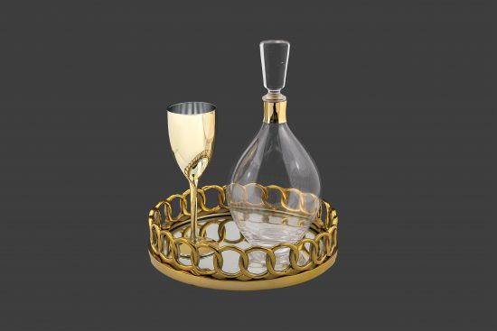 - Ο δίσκος είναι μεταλλικός, διακοσμημένος με σαγρέ κρίκους, ενώ εσωτερικά διαθέτει καθρέφτη.