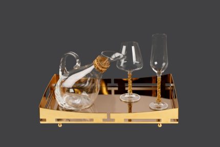 Δίσκος μεταλλικός χρυσός με καθρέπτη σετ 2 τεμαχίων