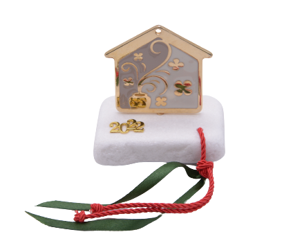 Γούρι Επίχρυσό Σπιτάκι με Σμάλτο σε Μάρμαρο Θάσου