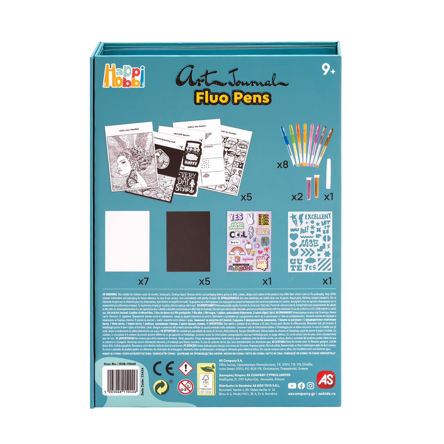Το Art Journal Fluo Στυλό, είναι η απόλυτη ατζέντα δημιουργικής έκφρασης για κάθε παιδί που θέλει να ζωγραφίζει και να δημιουργεί οπουδήποτε βρίσκεται. Ανοίγοντας την ατζέντα σας, θα βρείτε fluo στυλό, γκλίτερ και γκλιτερωτά αυτοκόλλητα για να προσθέσετε λάμψη στις δημιουργίες σας.