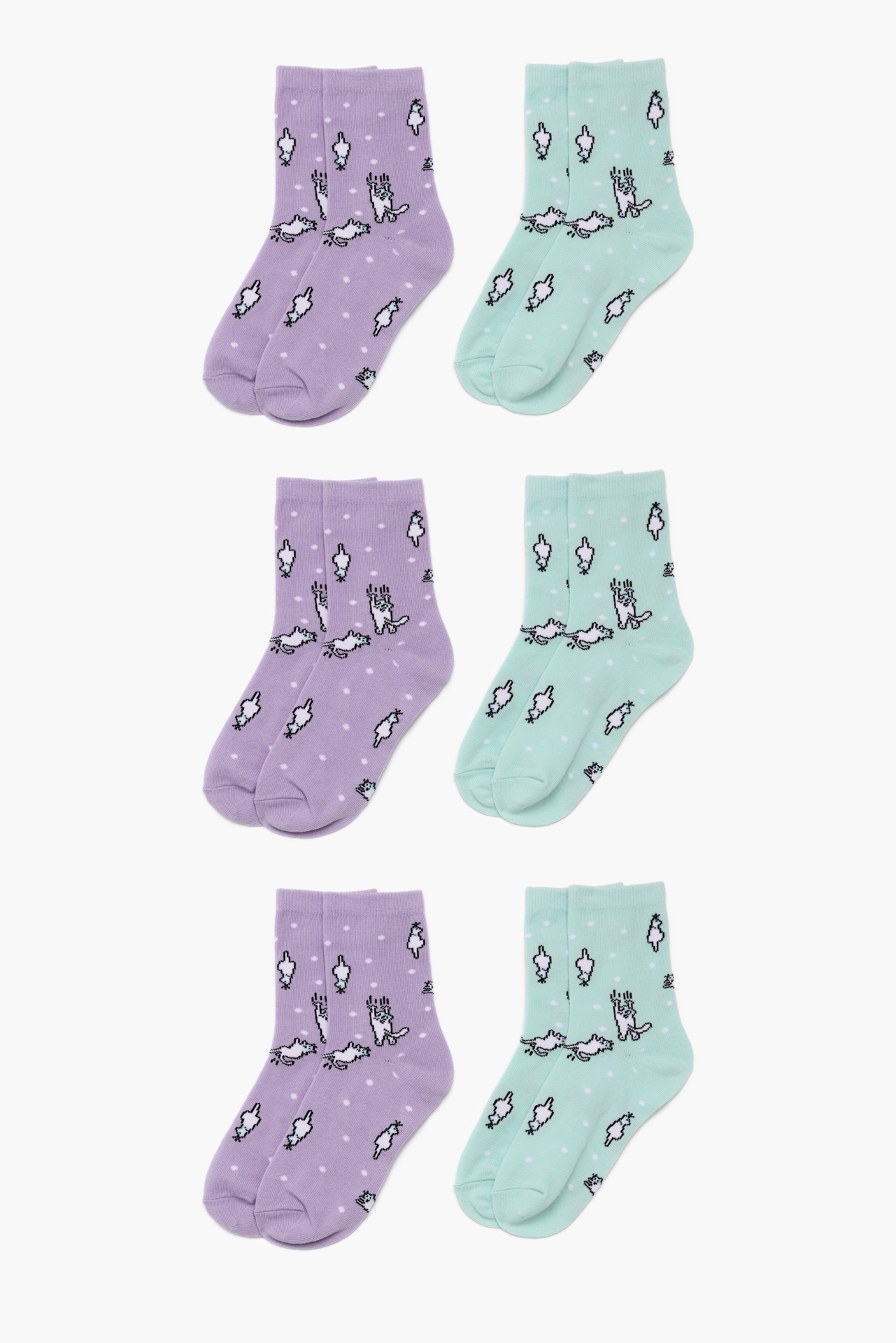 Παιδικές Κάλτσες Leopard για Κορίτσι, Συσκευασία 6 Ζεύγη, Λιλά Βαμβάκι 85%, Πολ.12%, Ελαστάν 3% - Pretty Baby