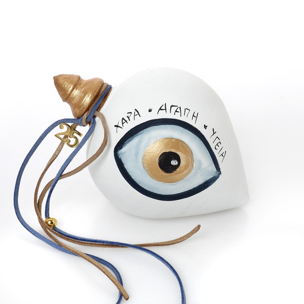 Κεραμική διακοσμητική σβούρα με ζωγραφισμένο στο χέρι ματάκι.