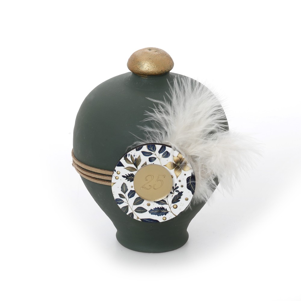Κεραμικός κουμπαράς πράσινος με πούπουλα και πλέξιγκλας 25.