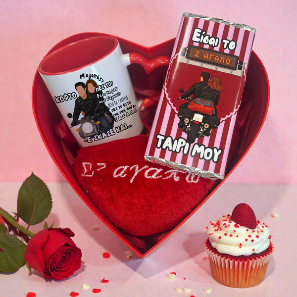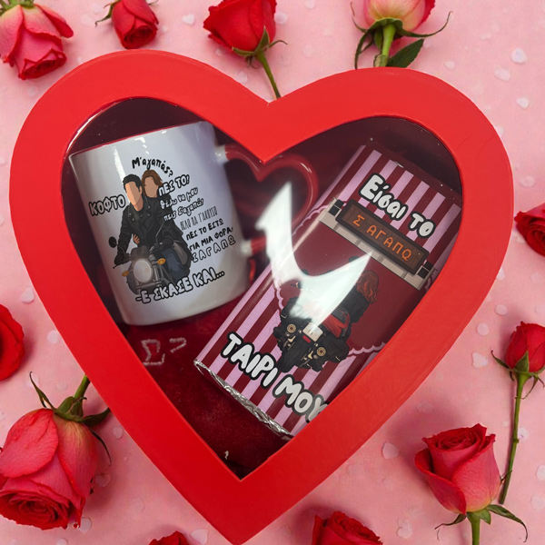 - 1 κούπα και 1 λούτρινη καρδιά που γράφει Σαγαπώ