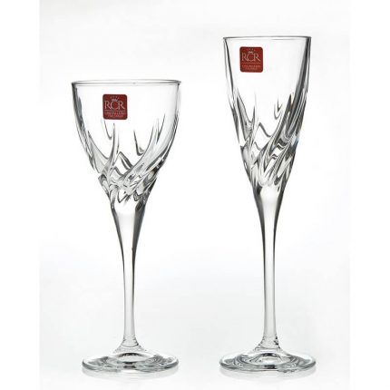 Γυάλινη καράφα γάμου στολισμένη με βέργες σε ασημί χρώμα.