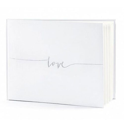 Λευκό Βιβλίο Ευχών με ασημί ανάγλυφα γράμματα Love, για να κρατήστε για πάντα τις ευχές των καλεσμένων.
