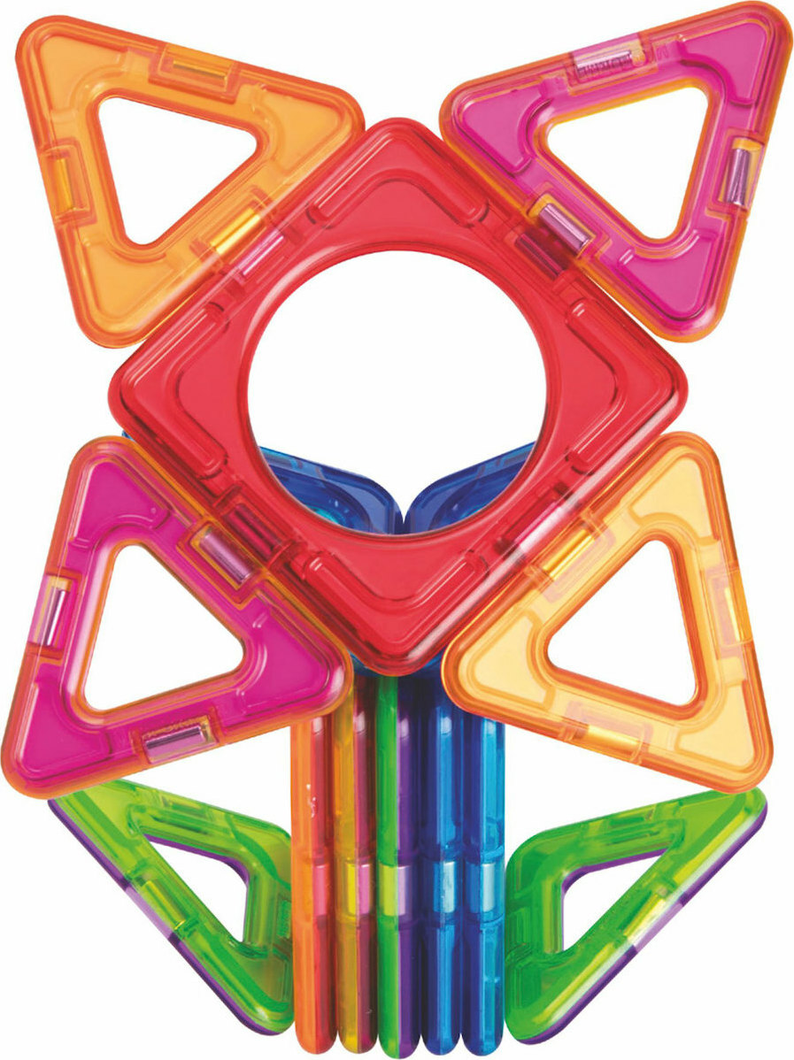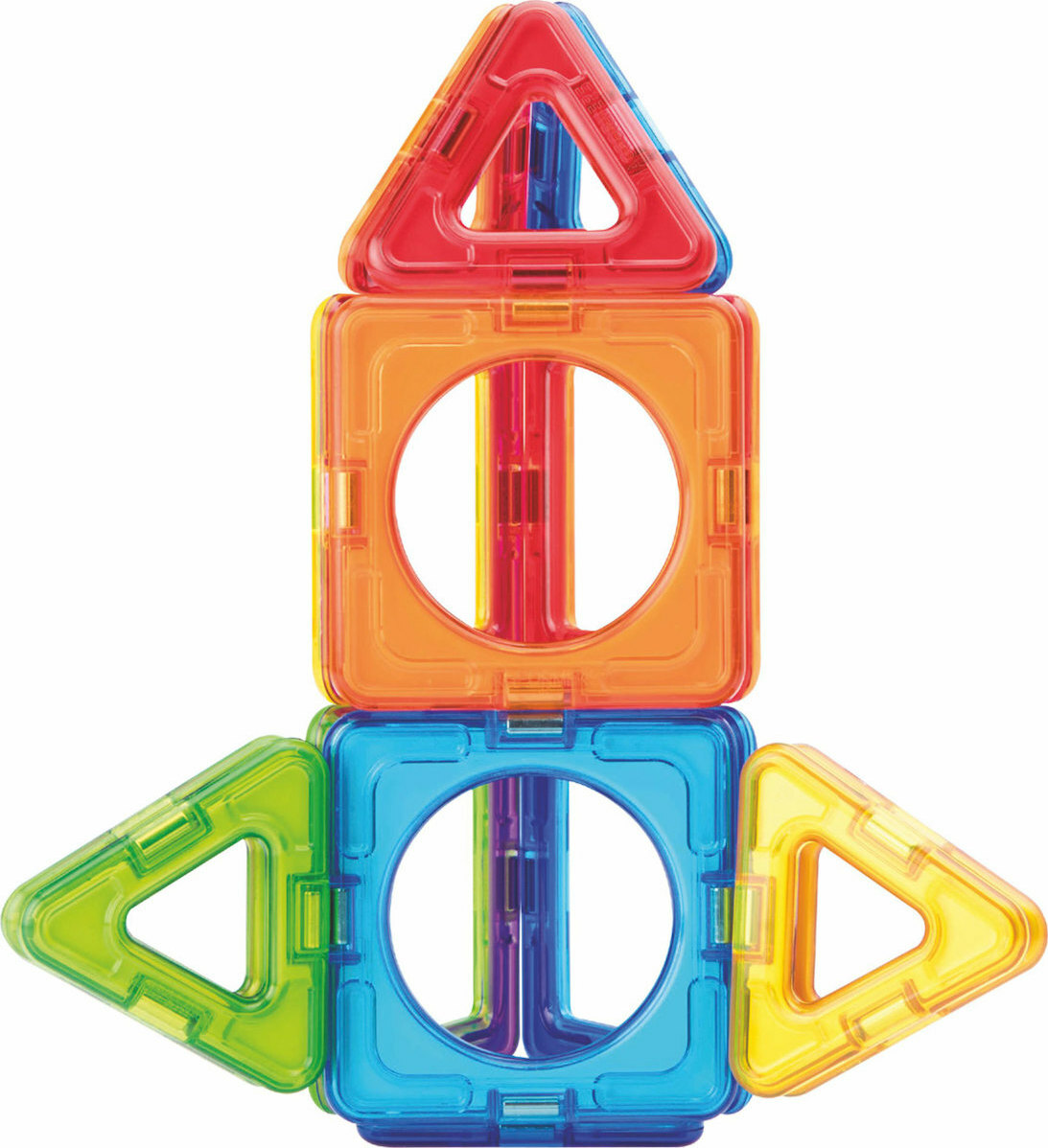 Κατασκευαστικό παιχνίδι με μαγνήτες που περιέχει 14 κομμάτια. Αποτελείται από 2 τετράγωνα με εσωτερικό κύκλο, 4 κανονικά τετράγωνα και 8 τρίγωνα με εσωτερικές καμπύλες. Κατασκευασμένο από υψηλής ποιότητας και ευκρίνειας υλικά σε πανέμορφα χρώματα.