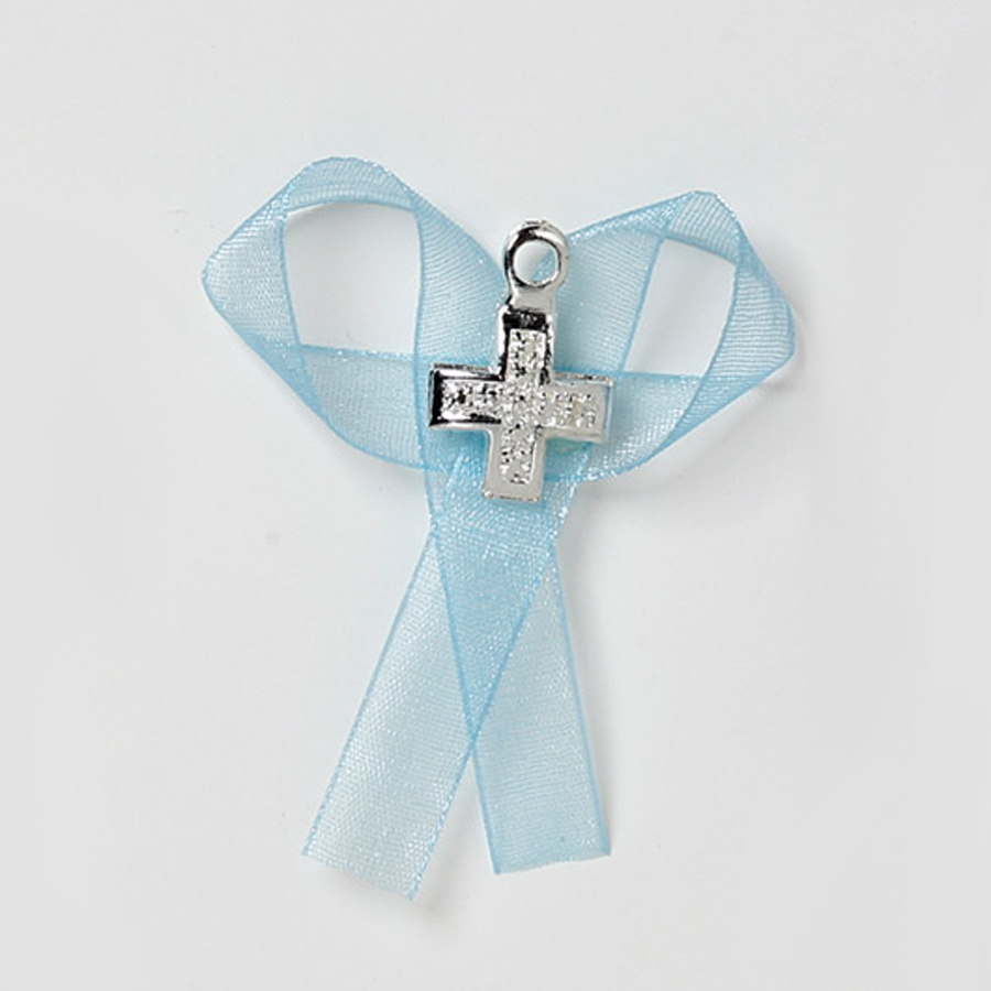 Μαρτυρικά βάπτισης πέτου με φιόγκο και σταυρουδάκι γαλάζιο 50τμχ
