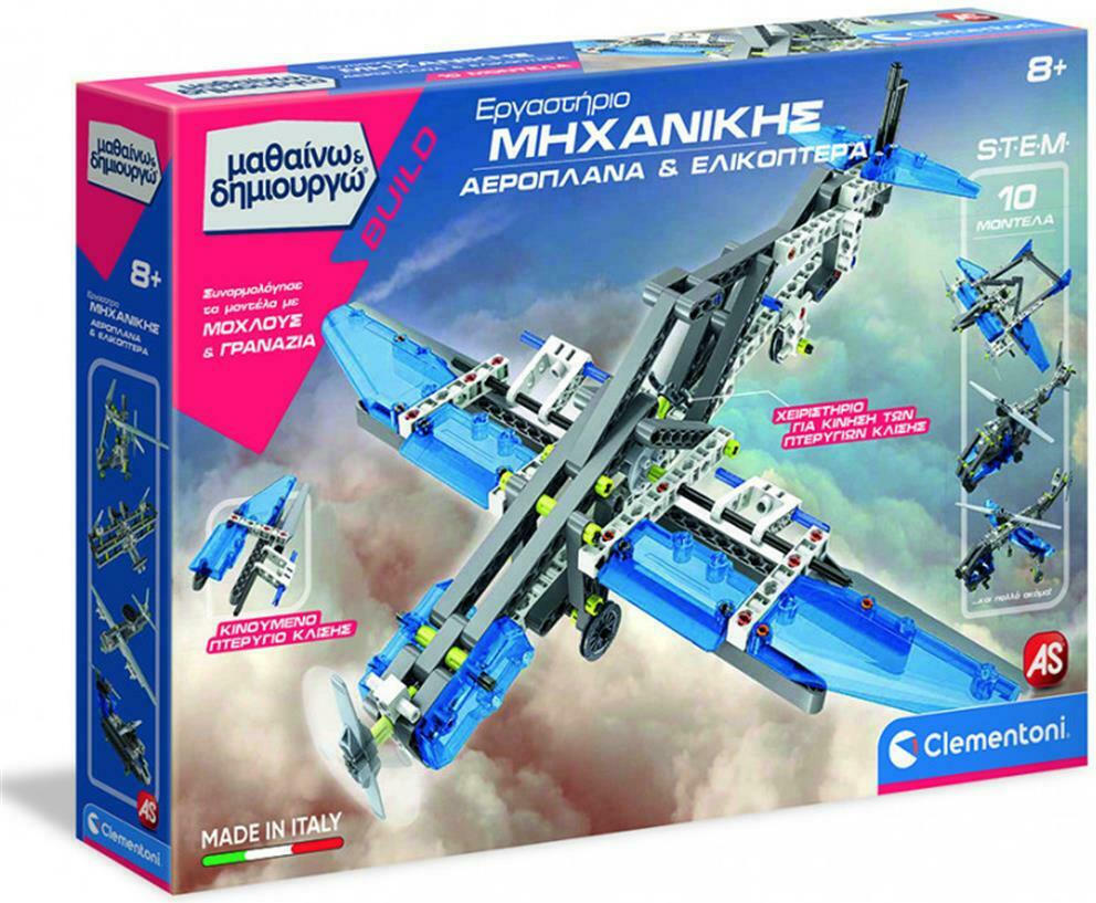Ένα επιστημονικό σετ που θα σε κάνει να ζήσεις απίστευτες περιπέτειες στο Εργαστήριο Μηχανικής Αεροπλάνα και Ελικόπτερα του Μαθαίνω και Δημιουργώ. Ένα φανταστικό σετ για να ανακαλύψεις την επιστήμη της αεροναυτικής και τις θεμελιώδεις αρχές της αεροδυναμικής, μέσα από την κατασκευή ρεαλιστικών μοντέλων αεροπλάνων και ελικοπτέρων. Περιλαμβάνει πάνω από 200 εξαρτήματα για τη συναρμολόγηση μερών όπως η άτρακτος, τα πάνελ, οι έλικες, τα γρανάζια, οι τροχαλίες κ.ά.