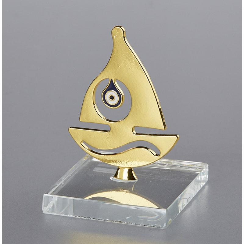 Καραβι μεταλλικό σε χρυσό με μάτι στηριζόμενο σε γυάλινη βάση