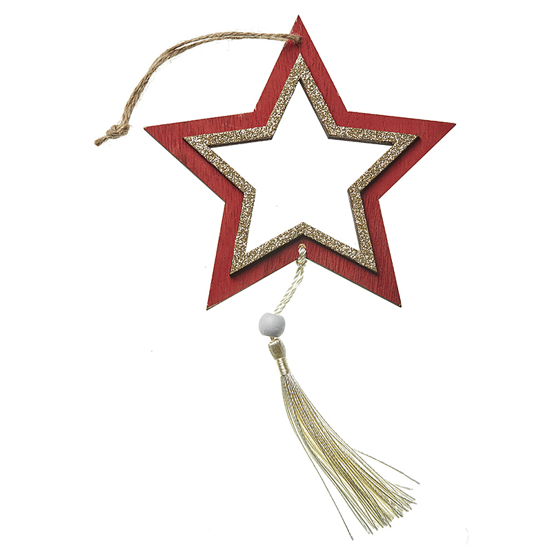 Ξύλινο κρεμαστό διακοσμητικό αστέρι κόκκινο με φούντα