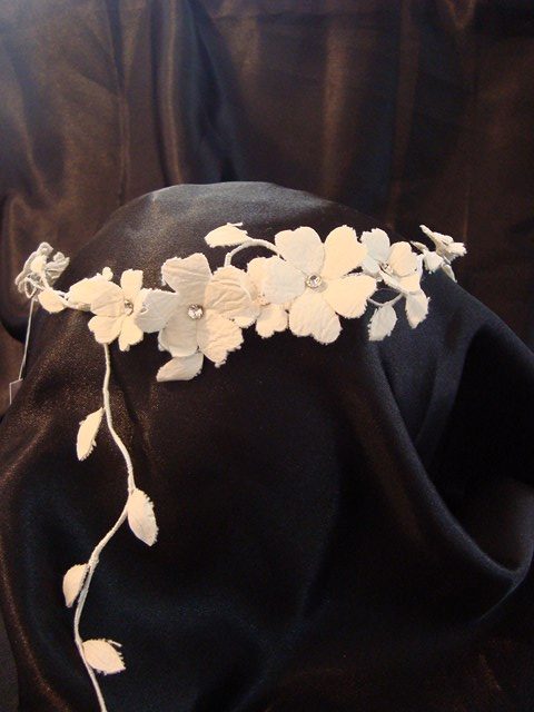 Νυφική Κουάφ – Στεφανάκι, με υφασμάτινα λουλούδια και πέτρες στρας!