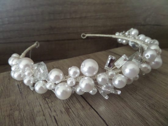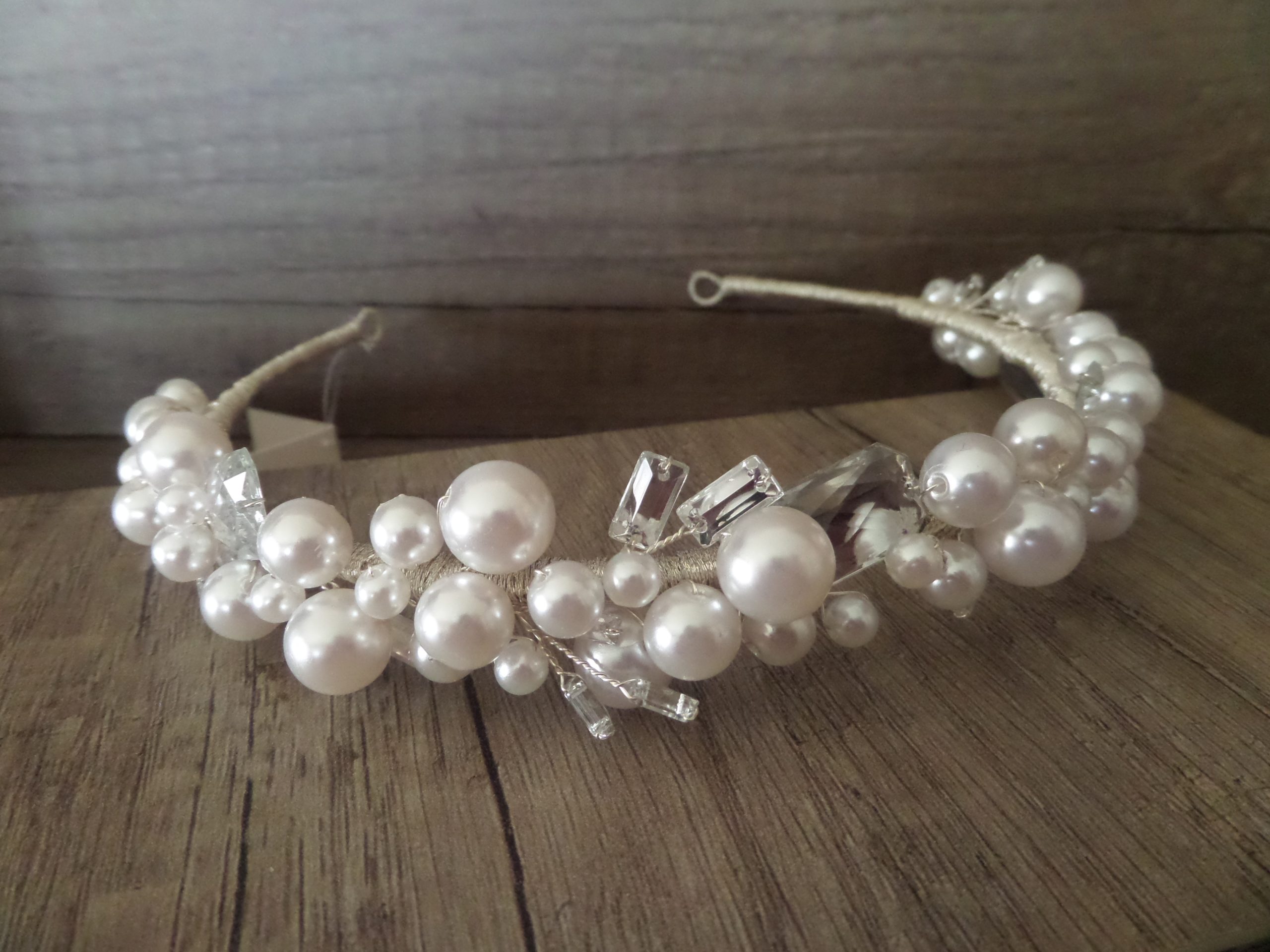 Χειροποίητη κουάφ-στεφανάκι με διάφανους κρυστάλλους και πέρλες!