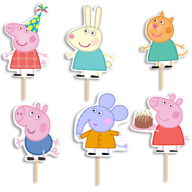 Topper-Οδοντογλυφίδες για να στολίσετε τα φαγητά και τα γλυκά του μπουφέ με θέμα την Πέππα το Γουρουνάκι και την παρέα της.