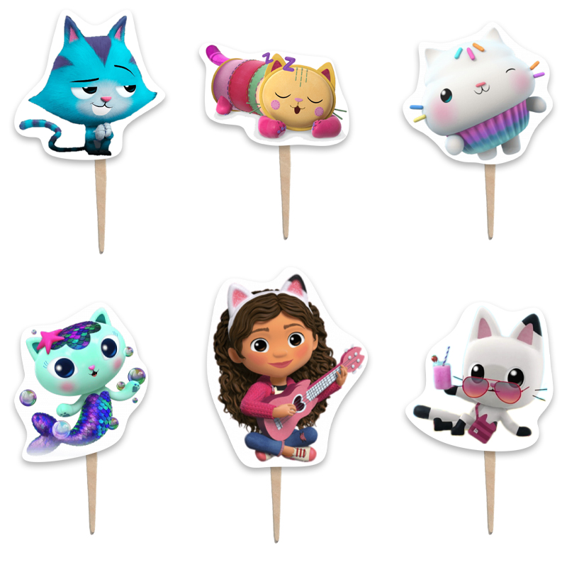 Οδοντογλυφίδες για να στολίσετε τα ζαχαρωτά και τα cupcake του μπουφέ με θέμα το κουκλόσπιτο της Γκάμπι!