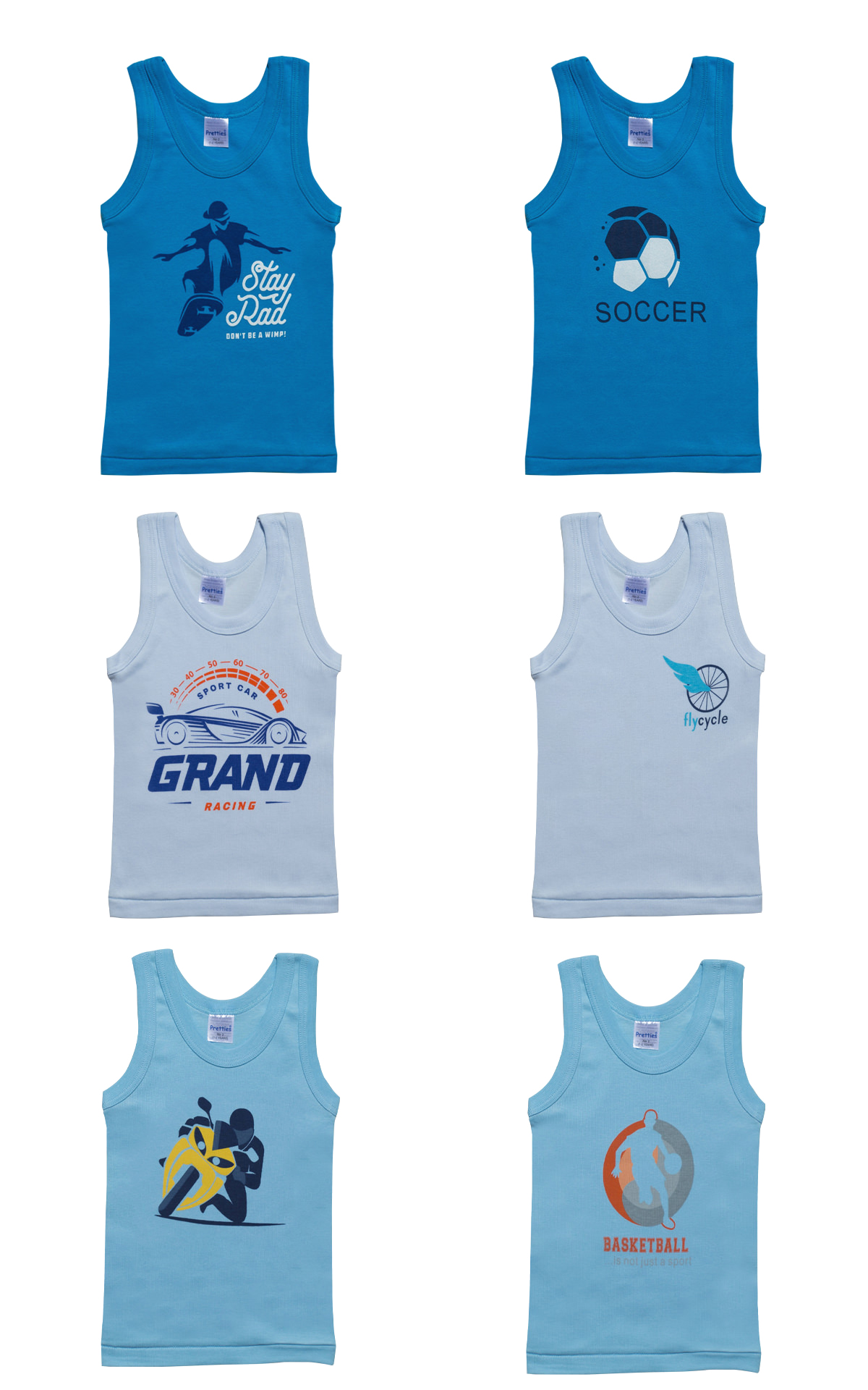 Παιδικά Φανελάκια για Αγόρι 6τμχ Λευκό Τιράντα, Βαμβακερά 100% – Pretty Baby