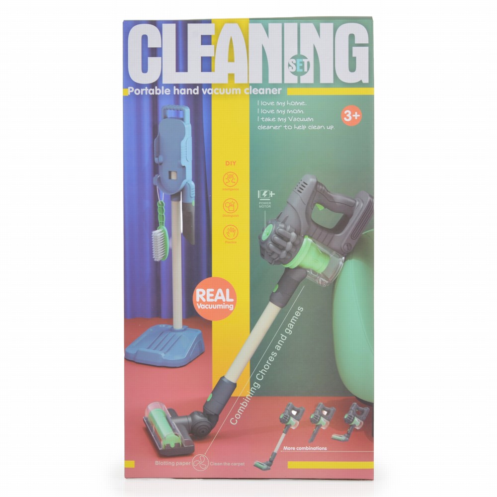 - Παιδικό σετ καθαρισμού με ρεαλιστική ηλεκτρική σκούπα χειρός και πραγματική αναρρόφηση.