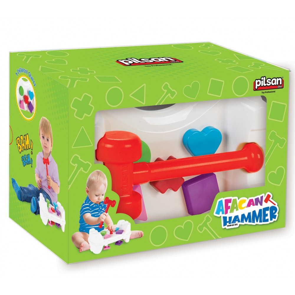 - Περιλαμβάνει διαφορετικά γεωμετρικά σχήματα τα οποία τοποθετούνται με τη βοήθεια του σφυριού